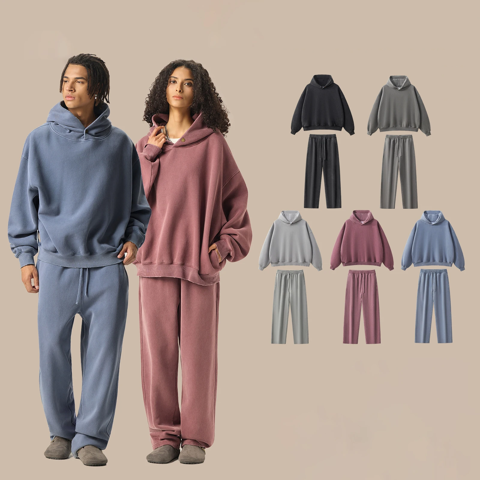 YISHENHON Hooded and Pants Custom Design Unisex Crewneck Sweatshirt Men Wholesale High Quality French Terry Two Piece 445 Grams