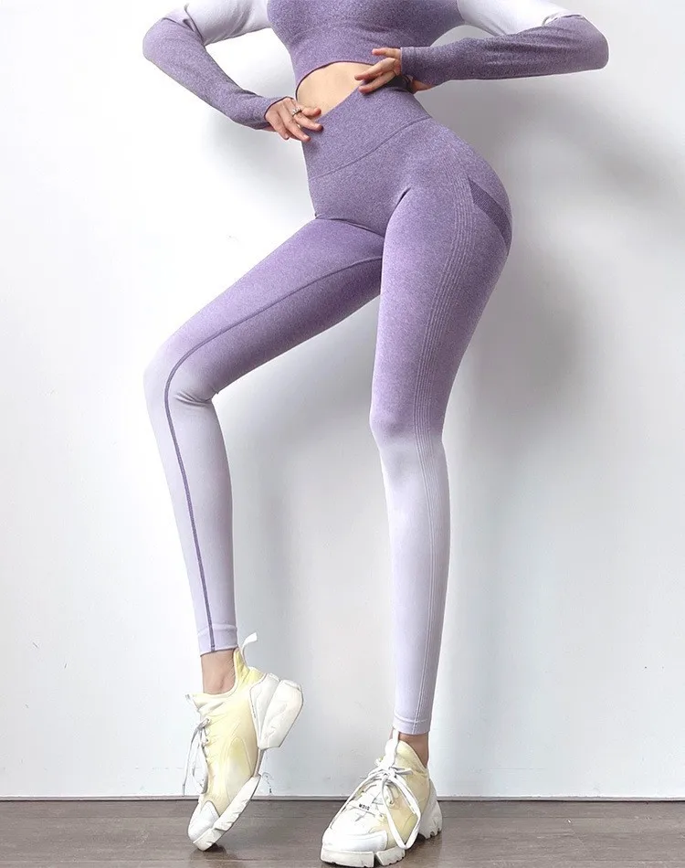 Women Fashion Design Gradient Color Mention Hip Casual Push up Legging Tie Dye Fitness Yoga Pants