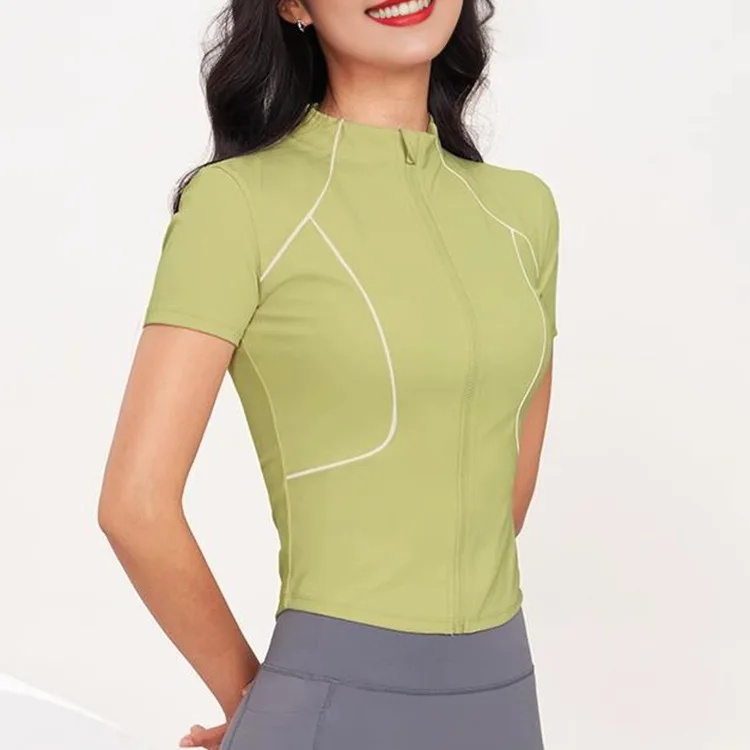 YISHENHON New Arrivals Quick-drying Women's Tight Running Sports Fitness Yoga Jacket Activewear Zip Long Sleeve Workout Crop Top