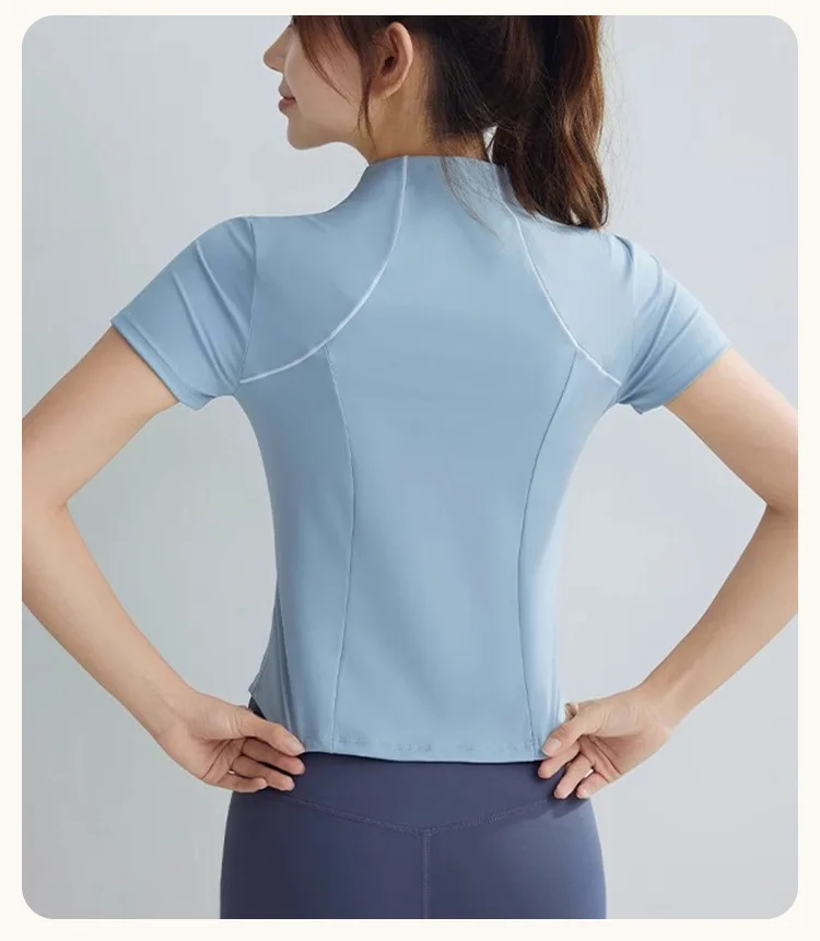 Women's Lightweight Yoga Jacket High Elasticity Short Sleeves Stand Collar Fitness Training Breathable Yoga Top