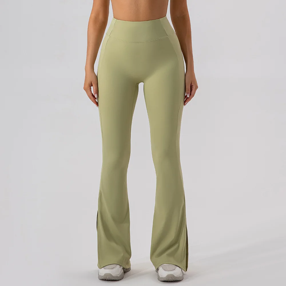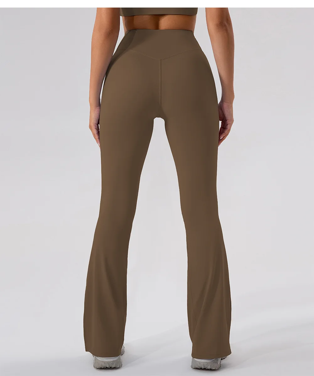 YISHENHON Recyclable Fabric Quick Dry Yoga V Waist Gym Leggings Running Workout Wide Leg Pants Flare Woman Sport Pants