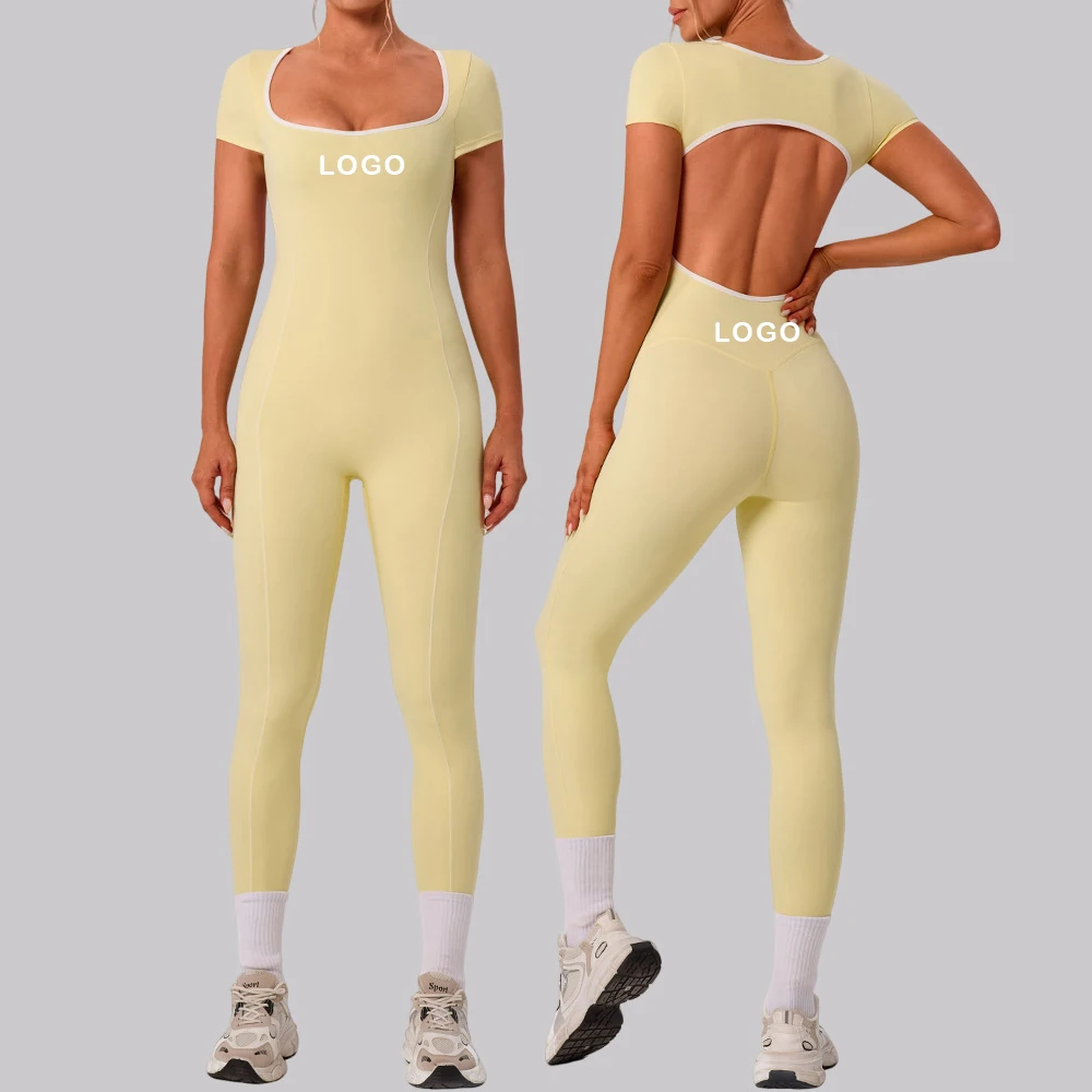 Custom Logo Sports Jumpsuit Wholesale One Piece Yoga Fitness Wear Women Gym Jumpsuit