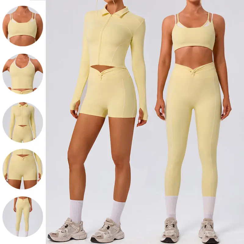 Custom Workout Activewear Yoga Sets Jacket Bra Fitness Sports Shorts Workout Leggings Gym Fitness Sets Womens Clothing