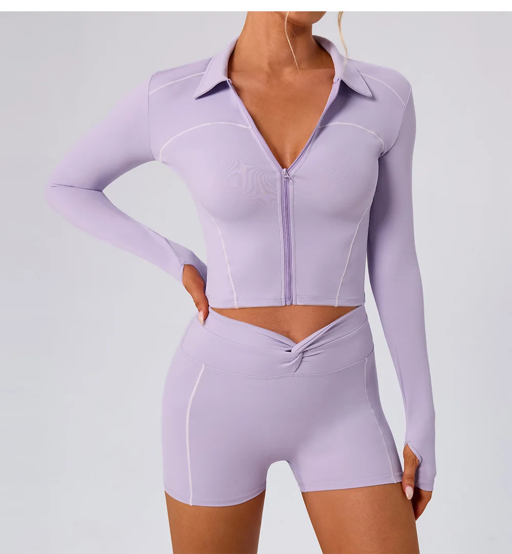 YISHENHON New Arrivals Quick-drying Women's Tight Running Sports Fitness Yoga Jacket Activewear Zip Long Sleeve Workout Crop Top