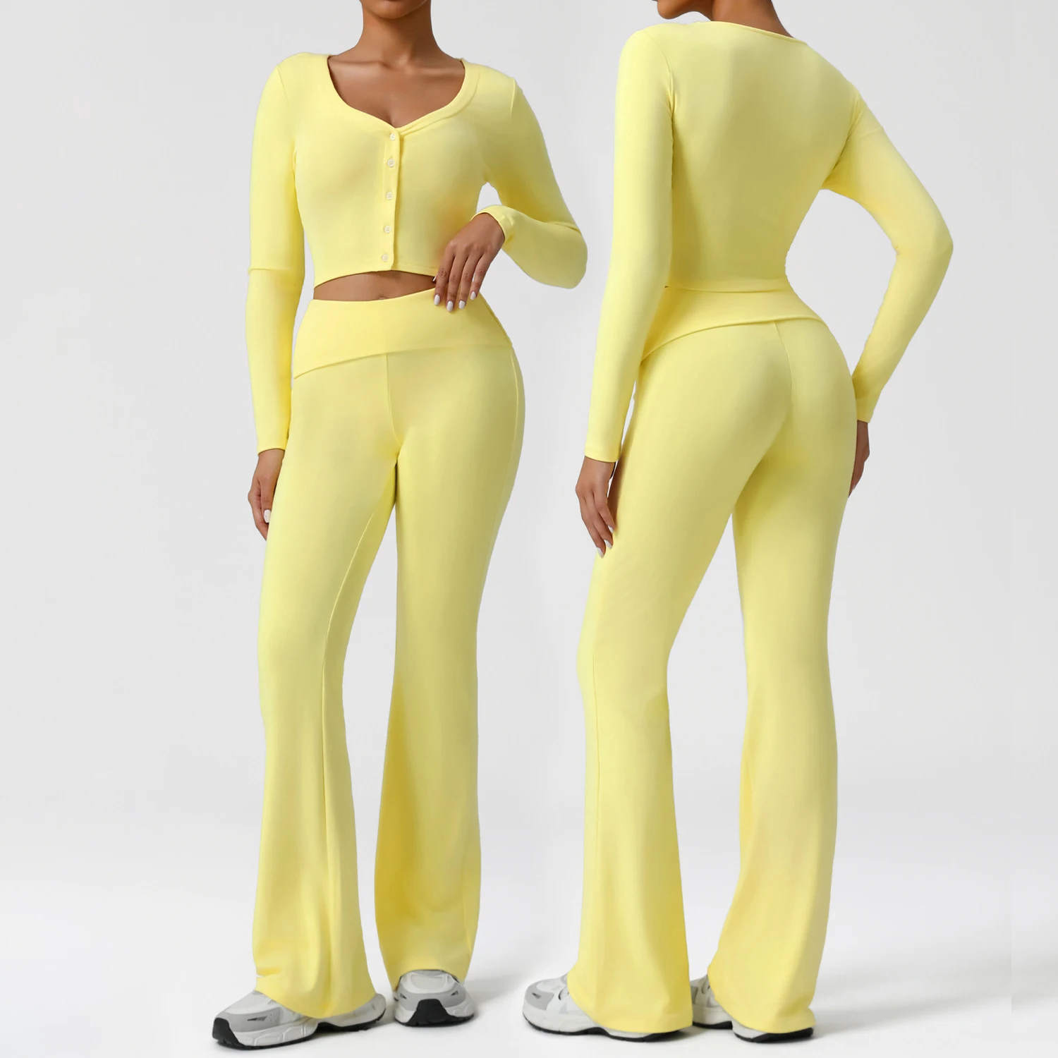 Women Solid Pattern Yoga Set Long Sleeves Slim Fitting Sports Streetwear Fitness Clothing Workout Sets