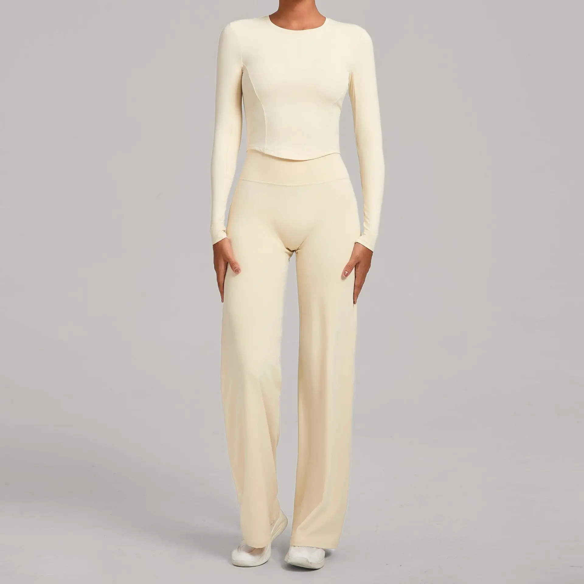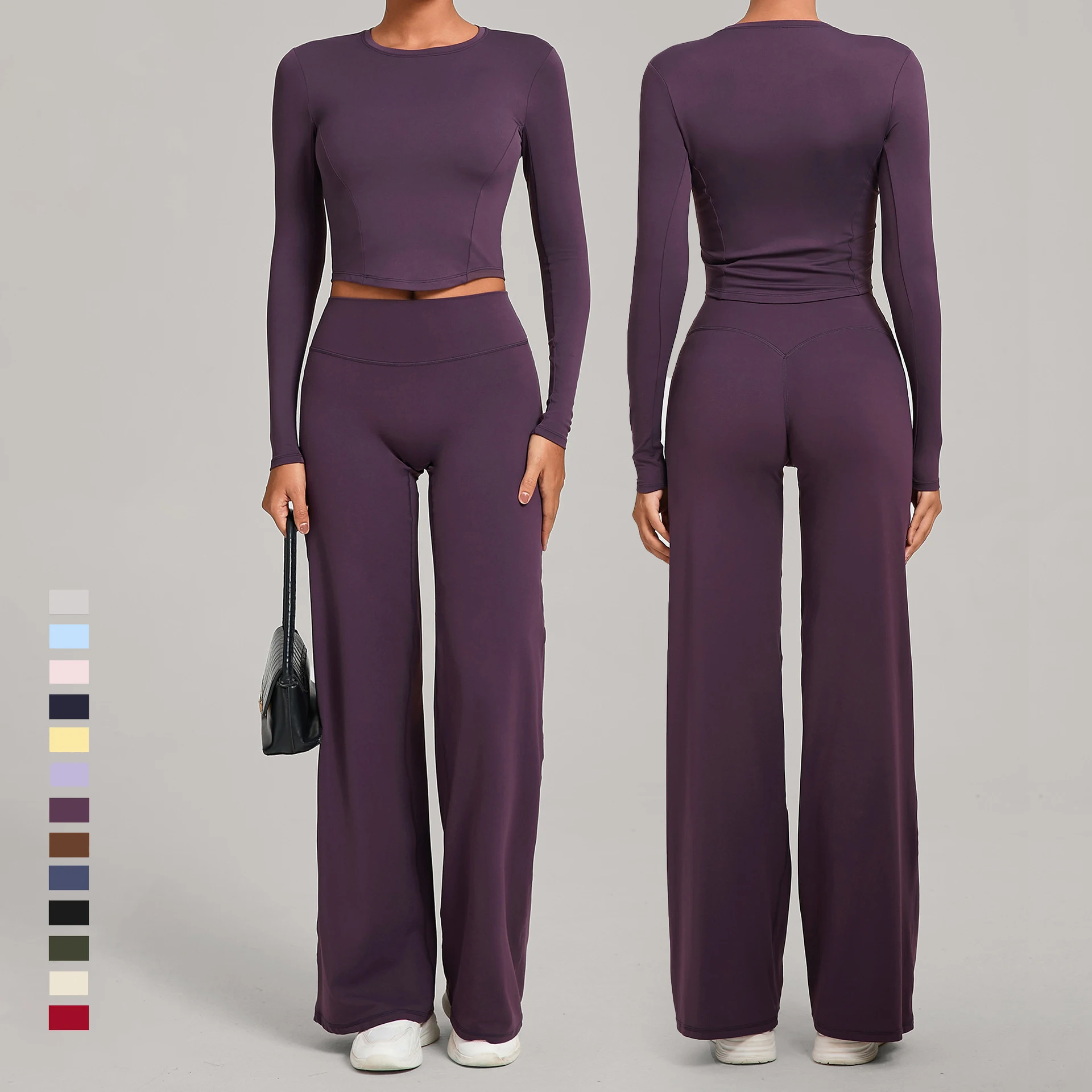 YISHENHON Recyclable Fabric Quick Dry Yoga V Waist Gym Leggings Running Workout Wide Leg Pants Flare Woman Sport Pants