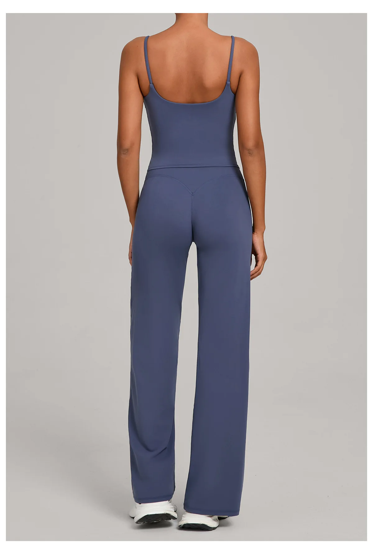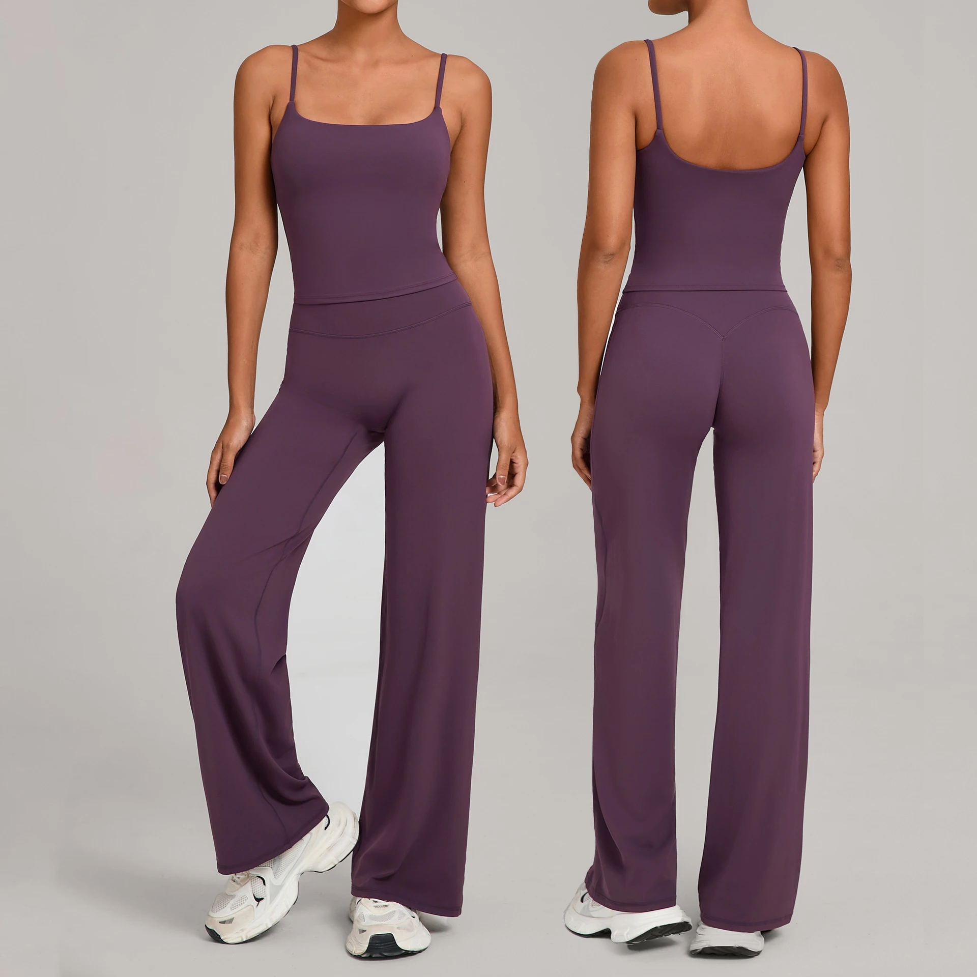 Custom Spaghetti Strap Tank Top Wide Leg Pants High Stretch Yoga Set Women Sports Suits