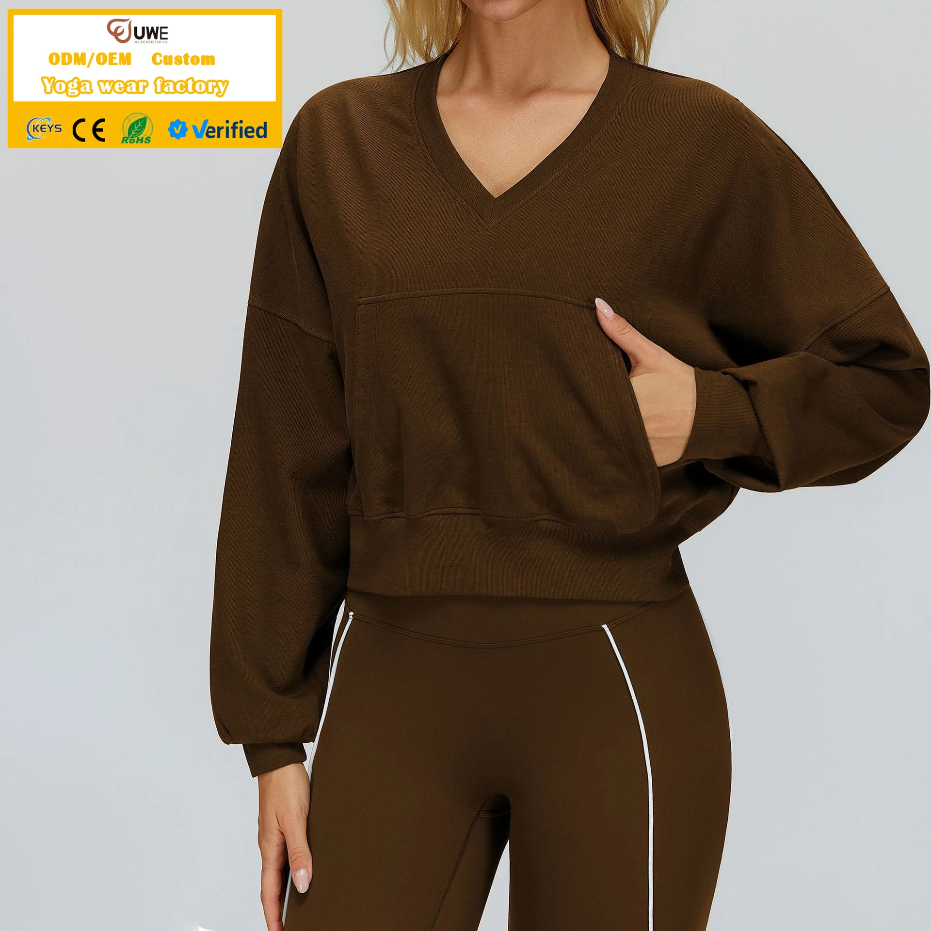 Custom Logo Women's Solid Color Hooded Sports Jacket Autumn Fitness Workout Sports Wear Loose Fit Sweatshirt