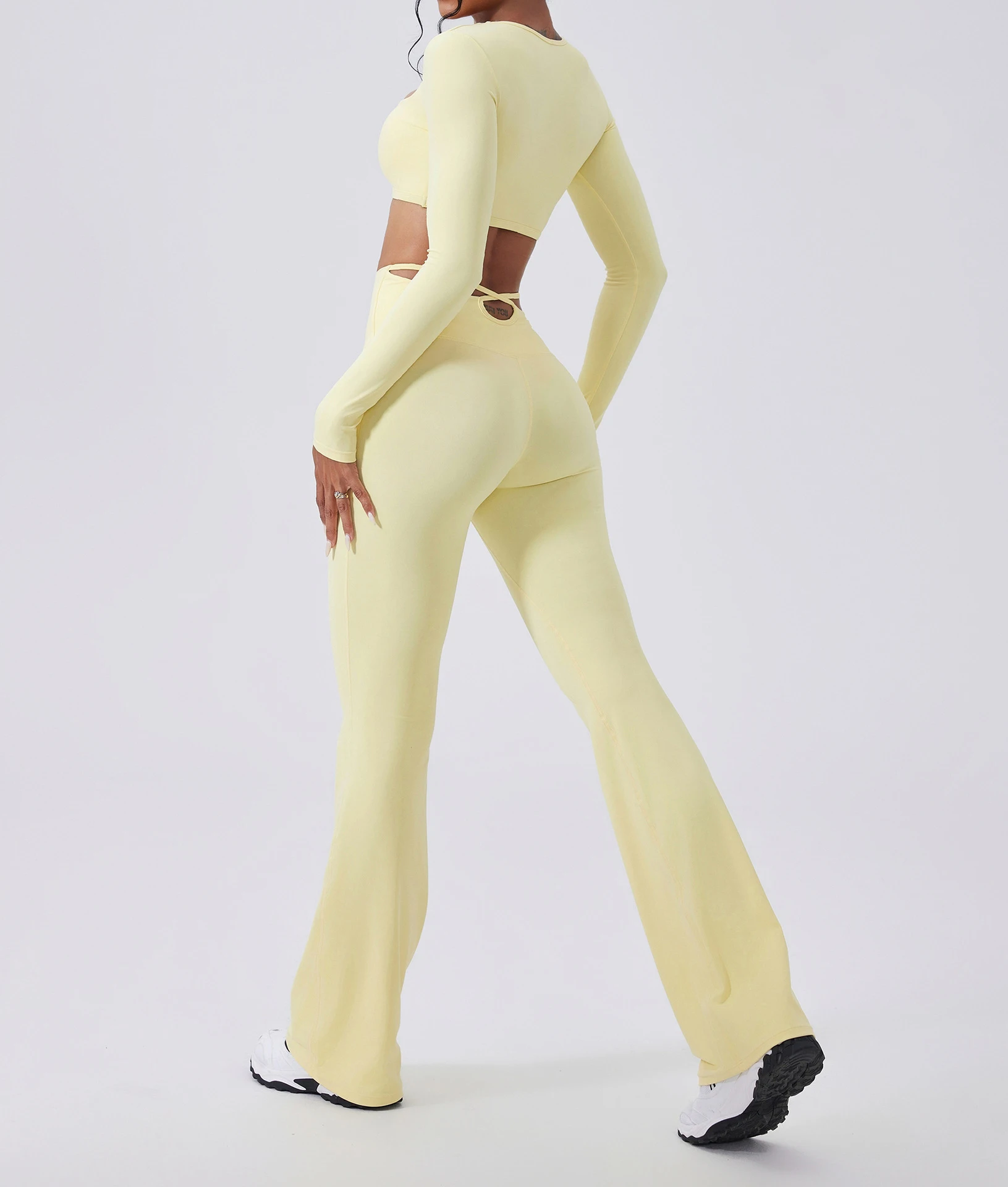 YISHENHON Recyclable Fabric Quick Dry Yoga V Waist Gym Leggings Running Workout Wide Leg Pants Flare Woman Sport Pants