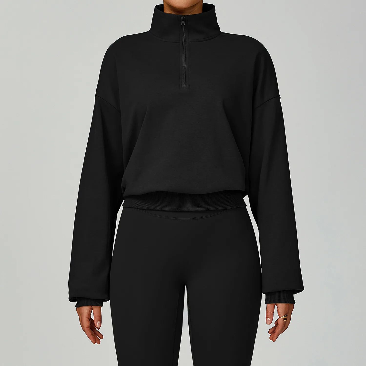 Women's Autumn and Winter Casual Sports Hoodie Stand up Collar Long Sleeves 1/4 Zipper Breathable Warm Yoga Top