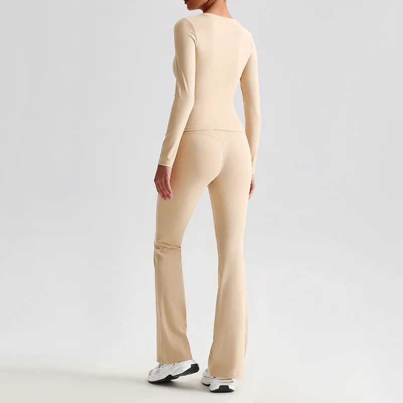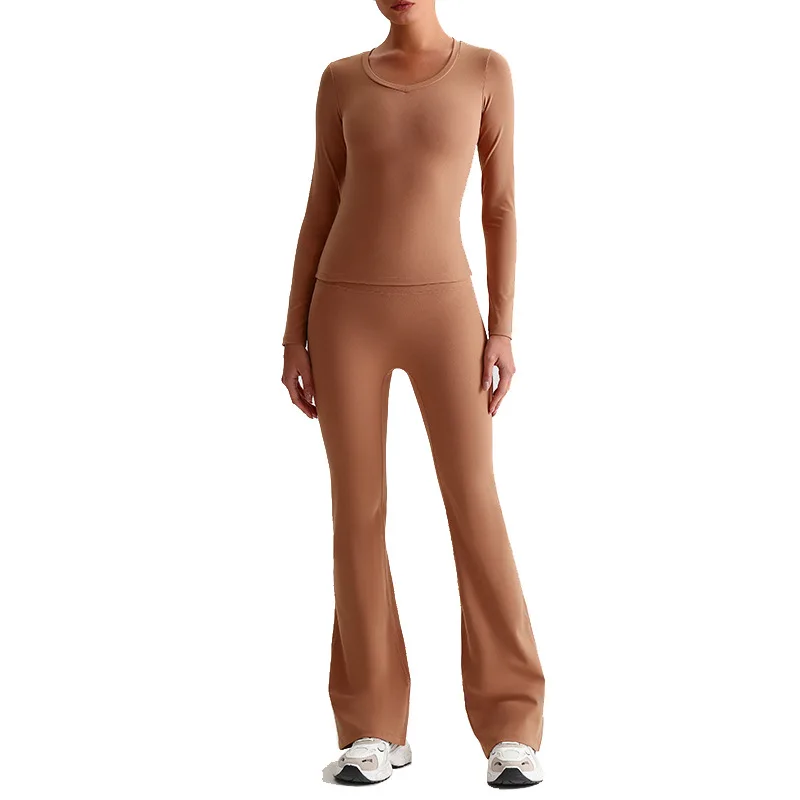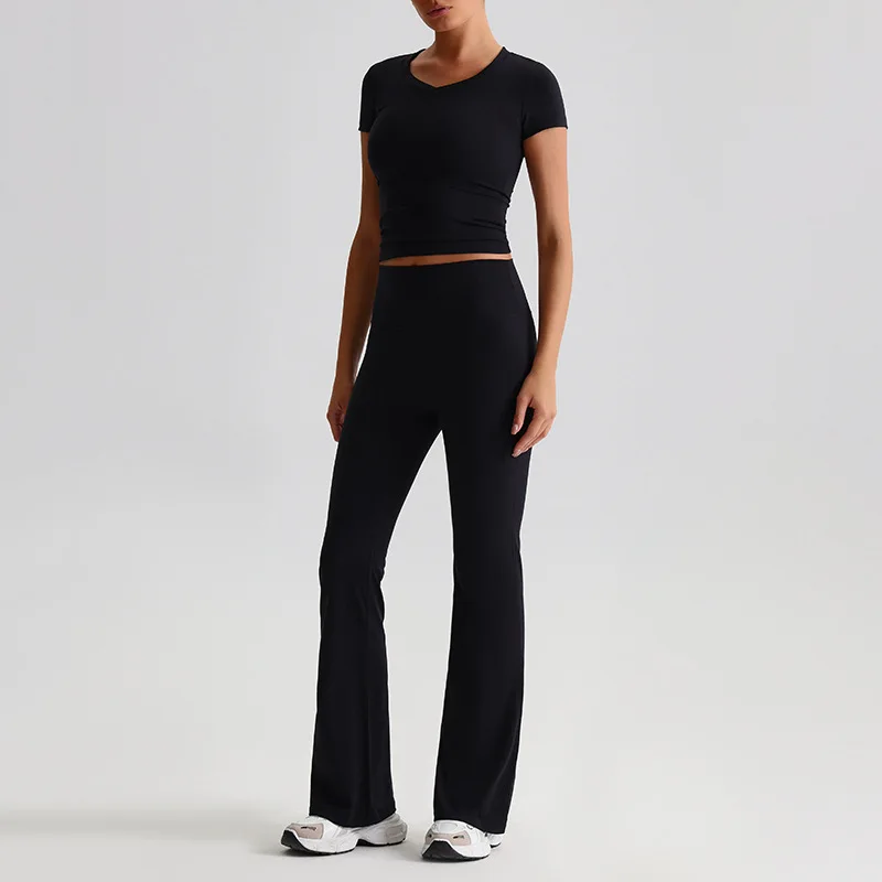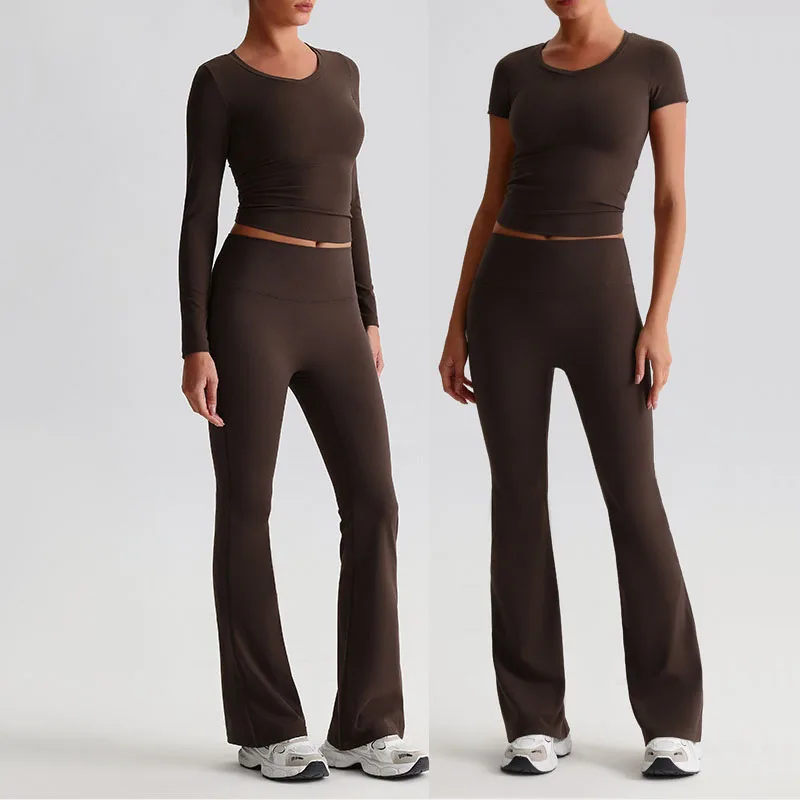 High Quality Women Hip Lifting Flare Pants Fitness Long Sleeve Short Sleeve Top T-Shirt Outdoor Running Yoga Sets