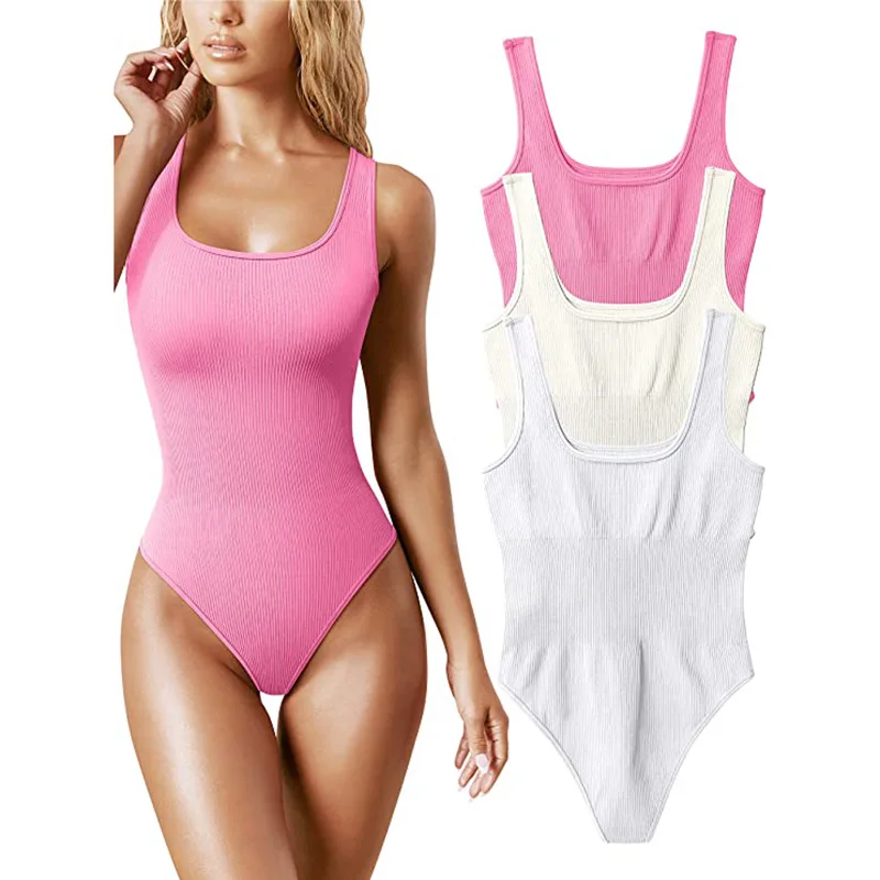 Woman Sleeveless Bodysuit Square Neck One Piece Jumpsuits Sexy Yoga Bodysuit