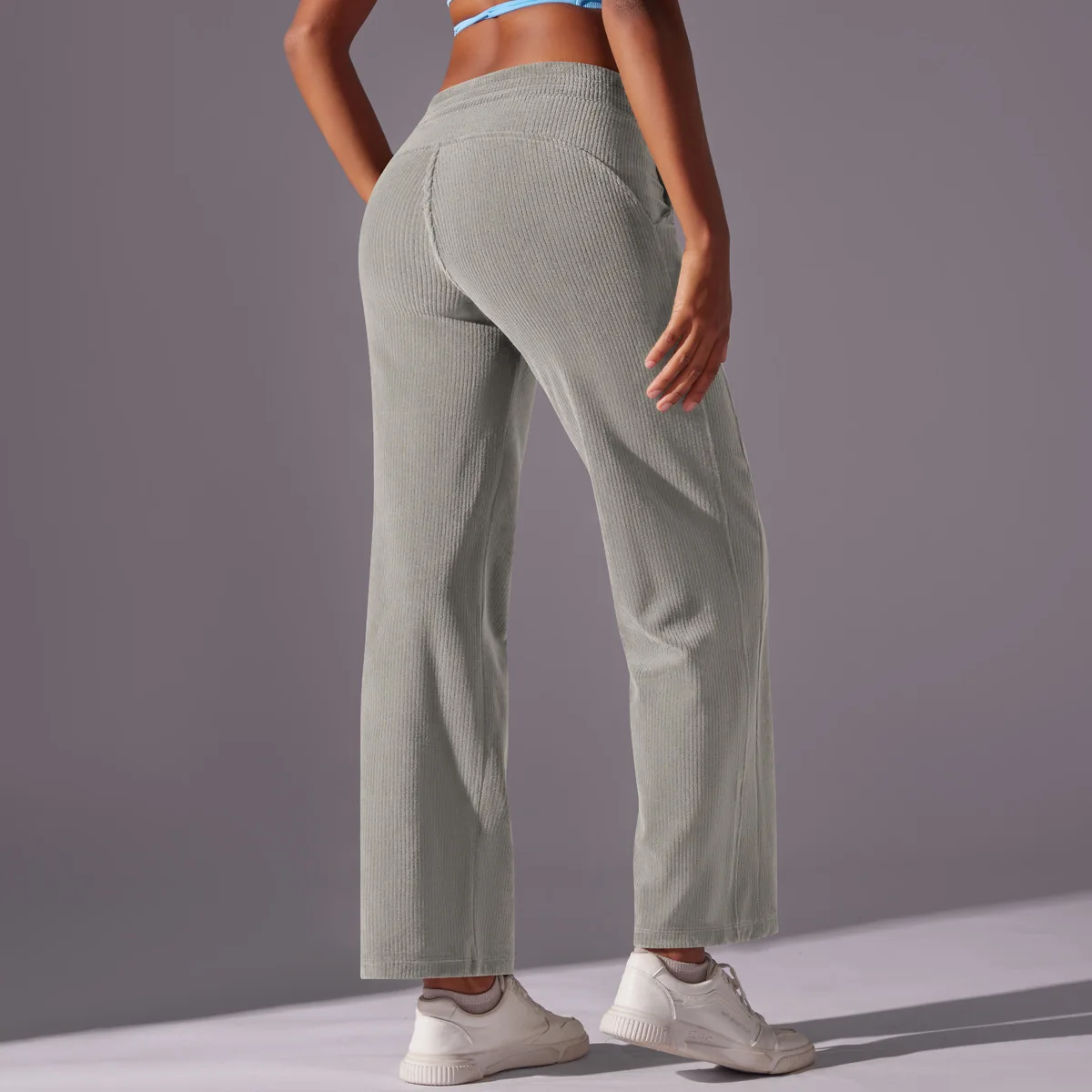 Custom Baggy Pants Solid Pattern Wide Leg High Velvet Corduroy Ribbed Casual Yoga Straight Leg Pants with Pocket