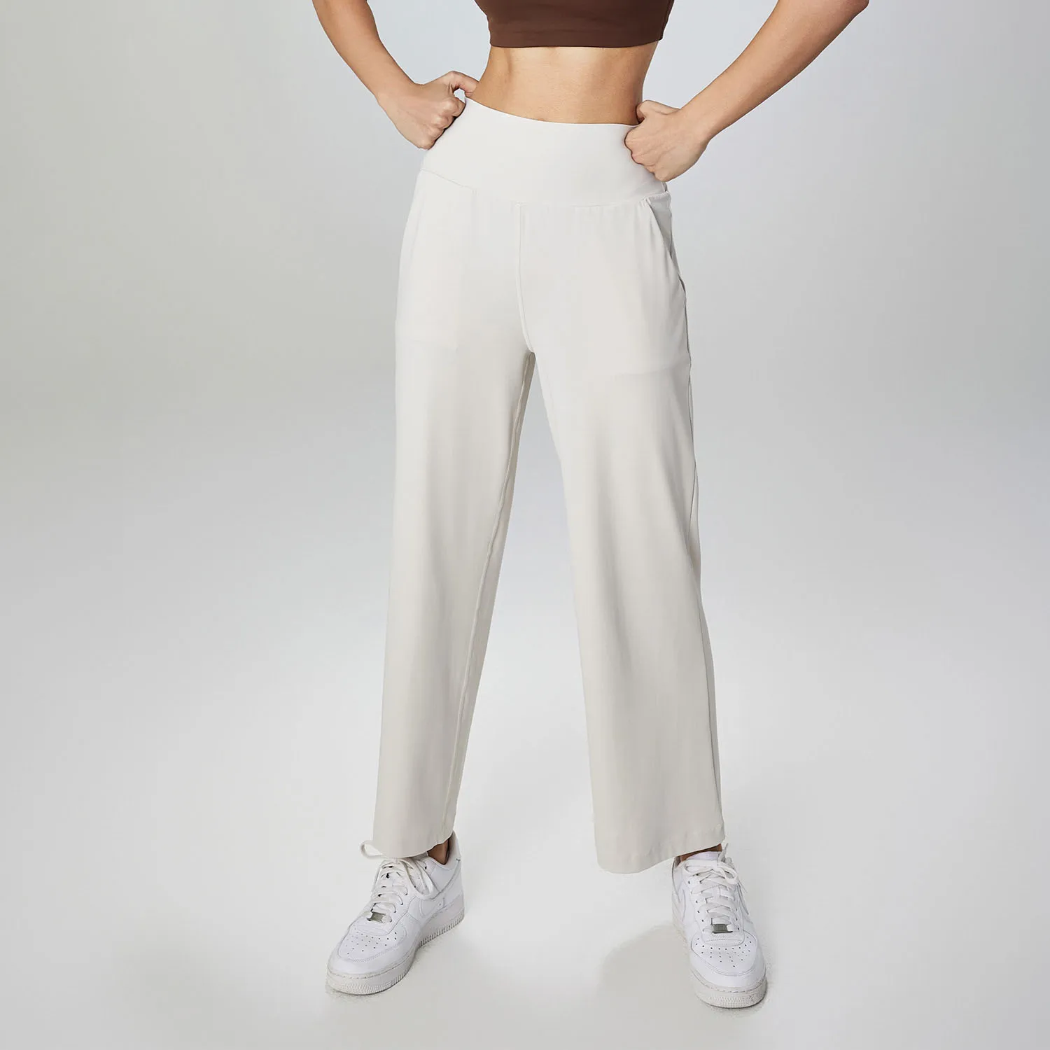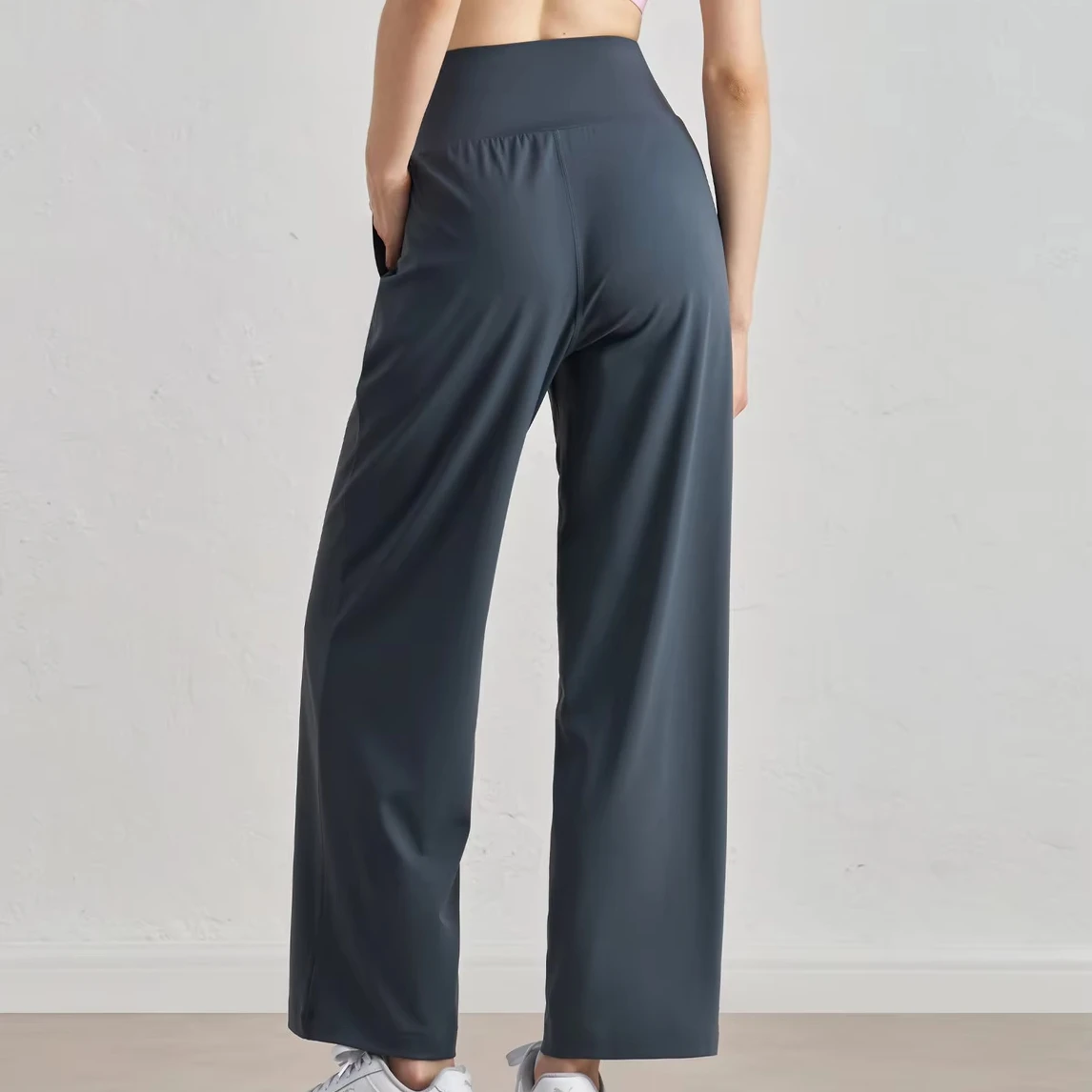 Custom Logo Woman Gym Fitness Sports Wide Leg Loose Causal Pants Women Side Pockets Sports Pants