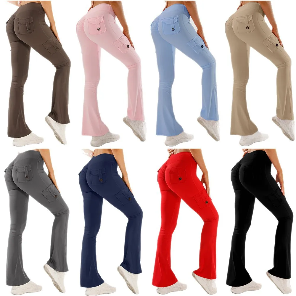 Custom Women High Waist Fitness High Stretch Sport Leggings Fashion Flared Cargo Pants Yoga Leggings