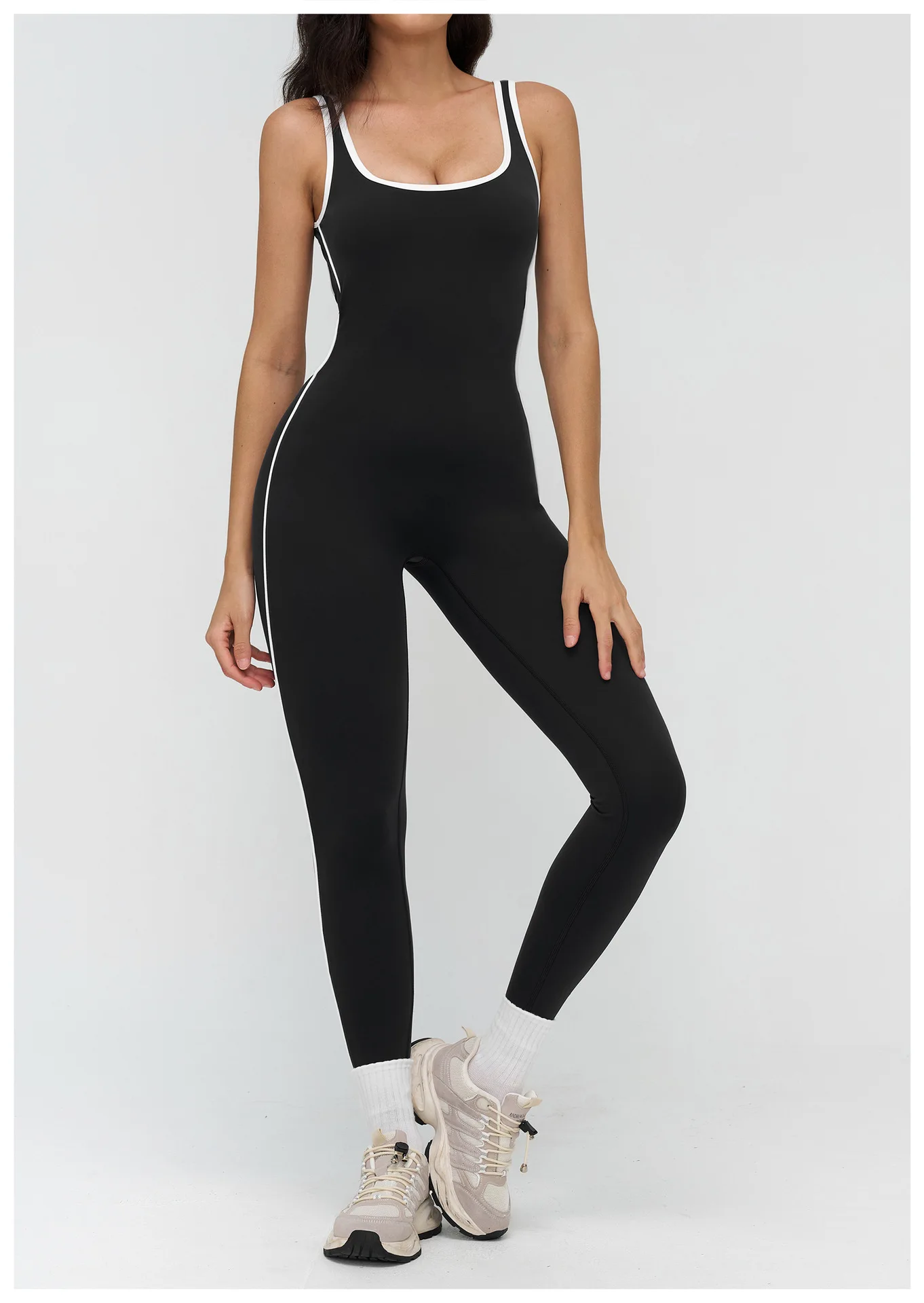Custom Activewear Gym Fitness Jumpsuit Squared Neckline Design Backless Yoga Jumpsuits