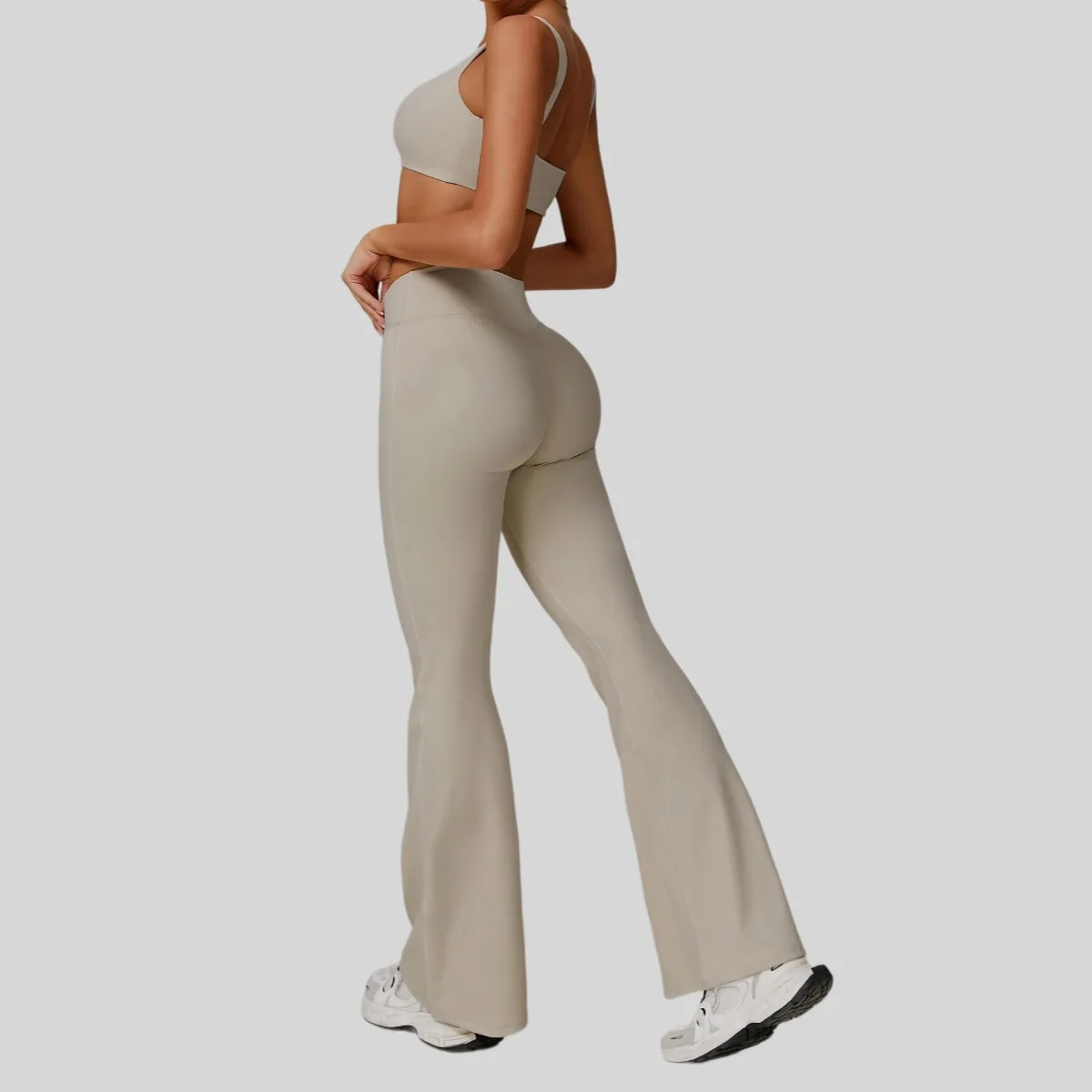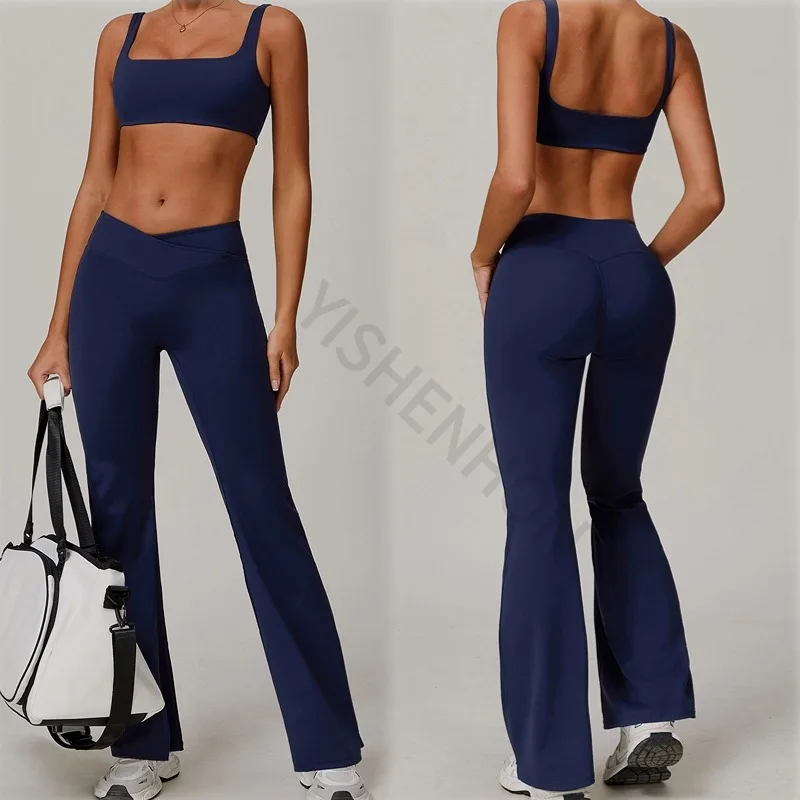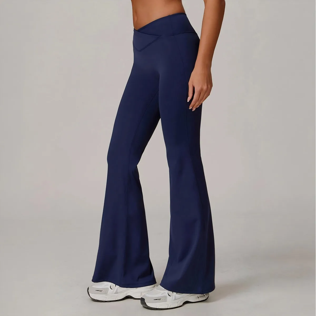 YISHENHON Recyclable Fabric Quick Dry Yoga V Waist Gym Leggings Running Workout Wide Leg Pants Flare Woman Sport Pants