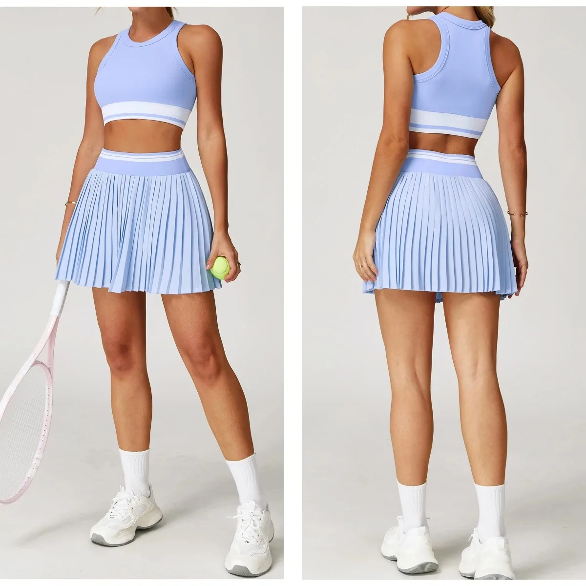 YISHENHON New Trend Low MOQ Outdoor Women's Lightweight Tennis Skirt and Bra Set High Waisted Pleated Skirt Breathable Suits