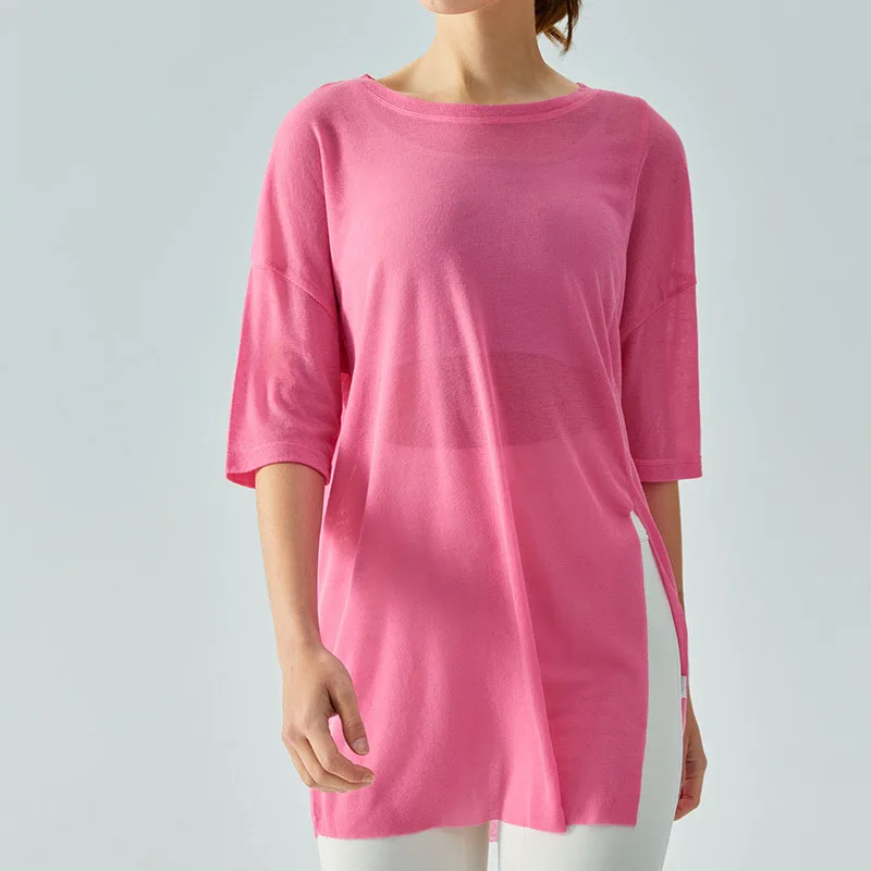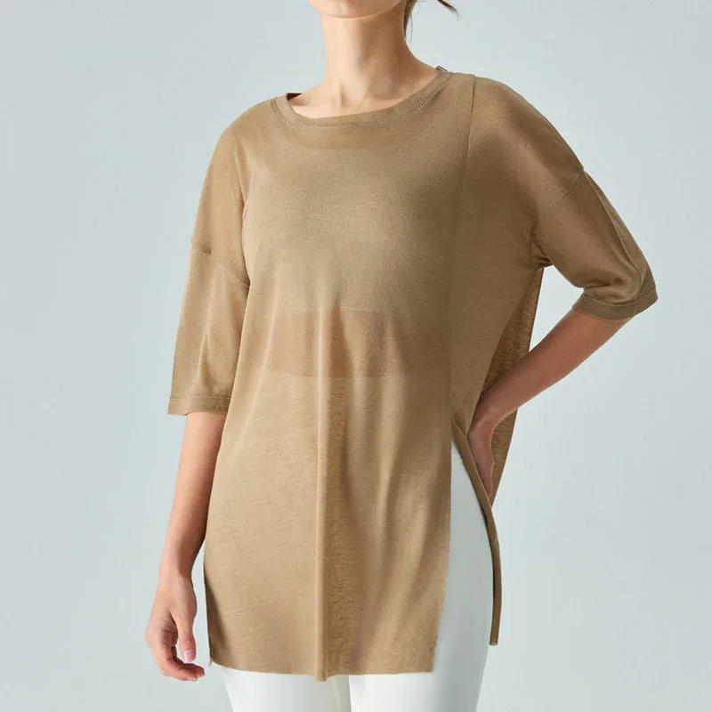 Custom Mesh Casual Sports Gym Top Women Fitness Workout Loose Short Sleeve Breathable Yoga T-shirt