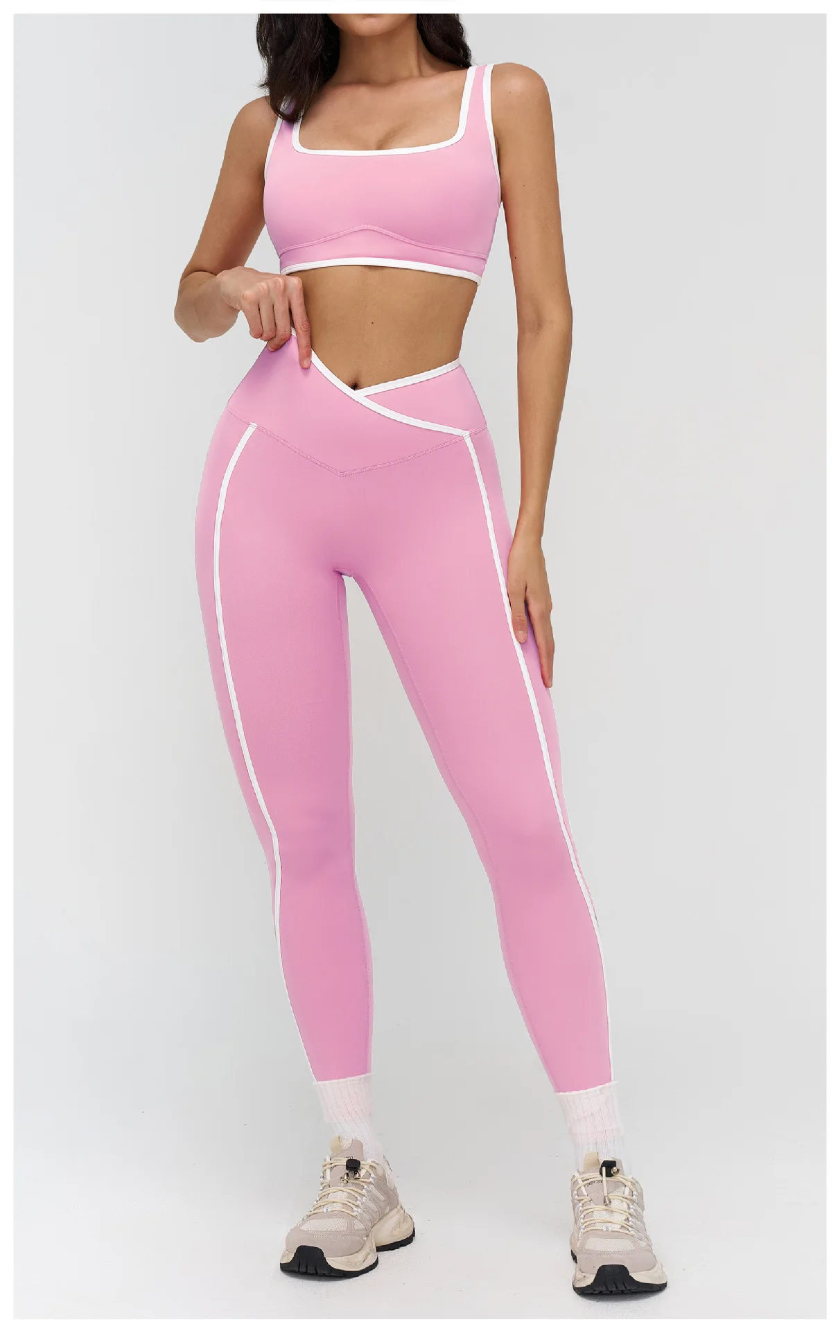 New Arrival Women Gym Fitness Wear Workout Clothing Yoga Set Contrast Color Sport Bra High Waist Legging Yoga Sets
