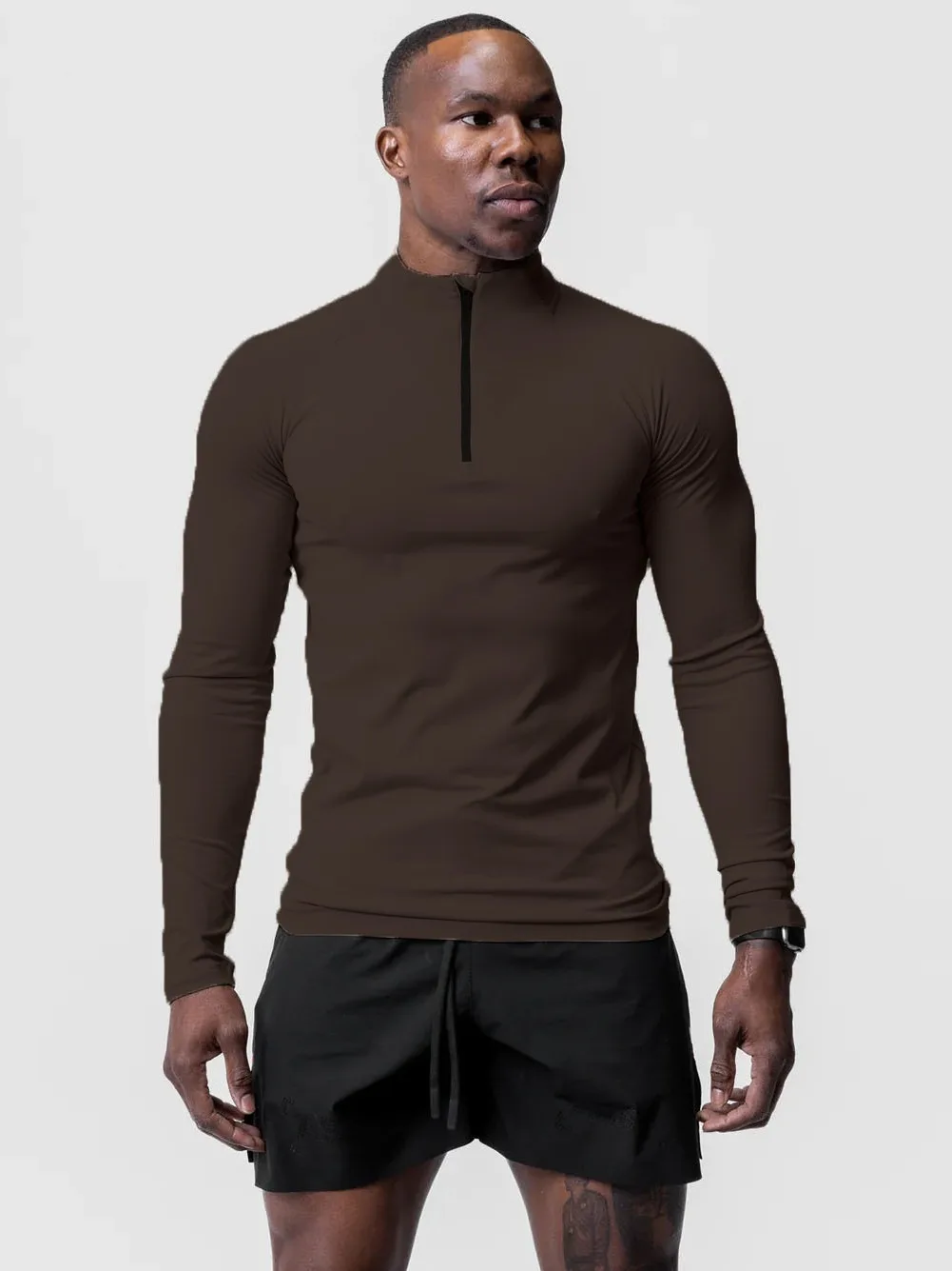 Men Fitness Workout Half Zip Turtleneck Long Sleeve Shirt Sports Full Sleeve Gym T-shirt