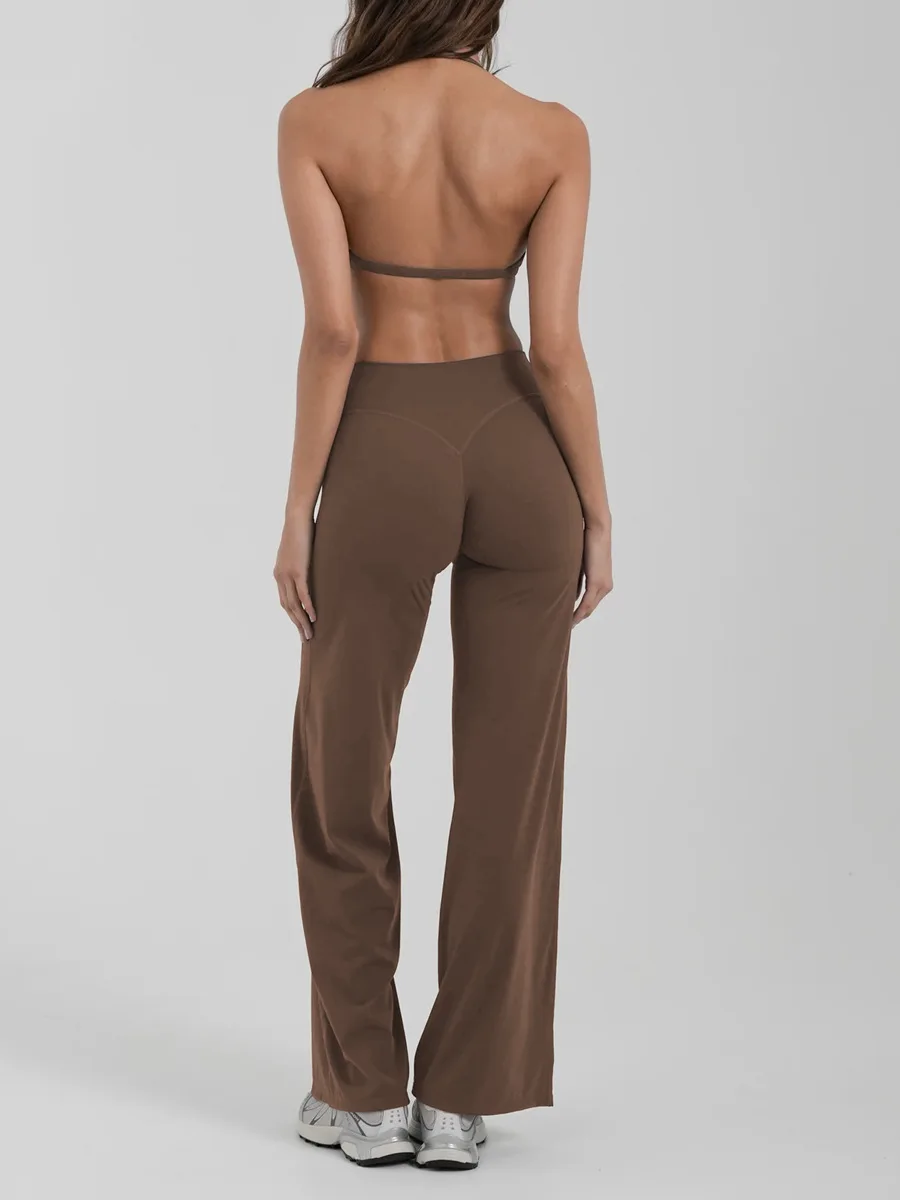 YISHENHON Recyclable Fabric Quick Dry Yoga V Waist Gym Leggings Running Workout Wide Leg Pants Flare Woman Sport Pants