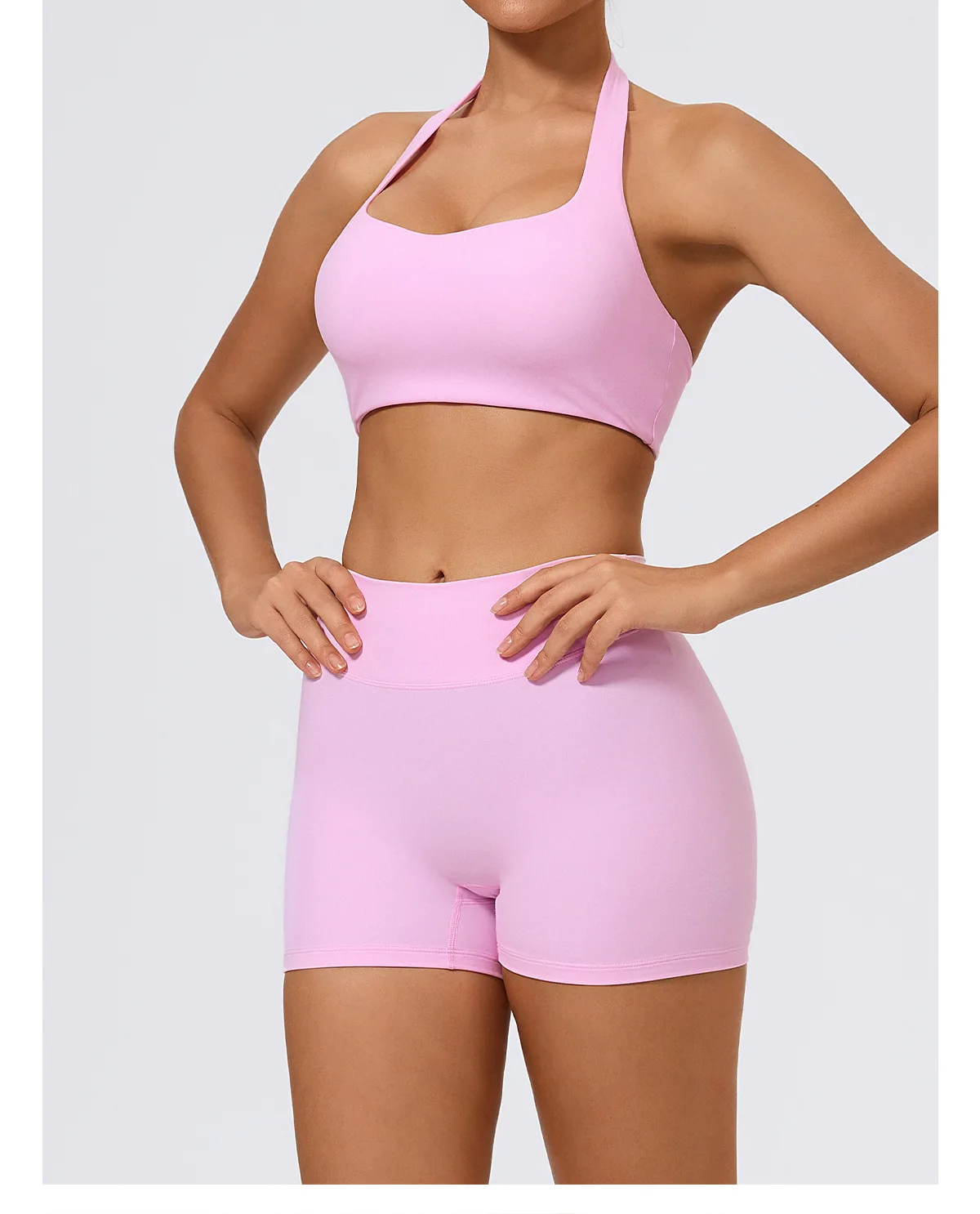 Hot Sale Solid Deep V Neck Bra Breathable Shorts 6 Piece Fitness Yoga Set Women Front Logo Lightweight Quick Dry Sports Suits
