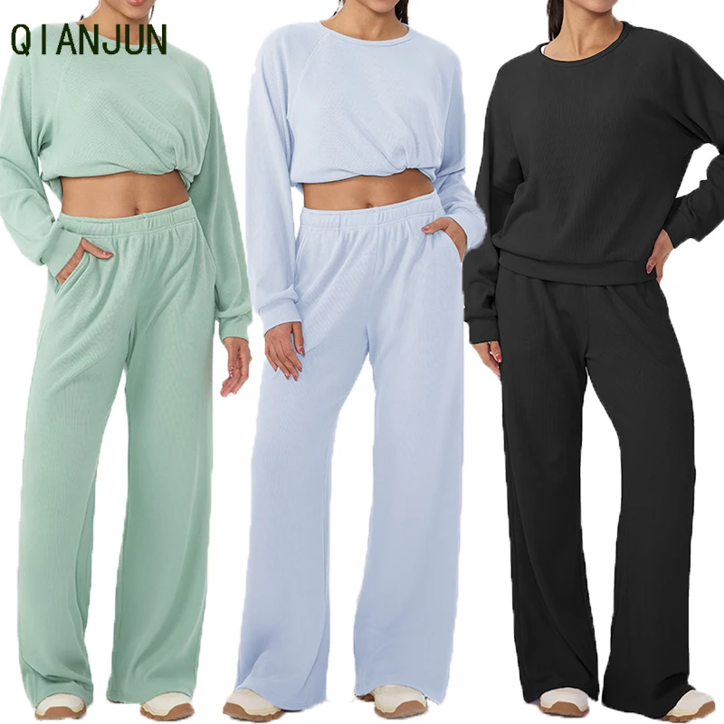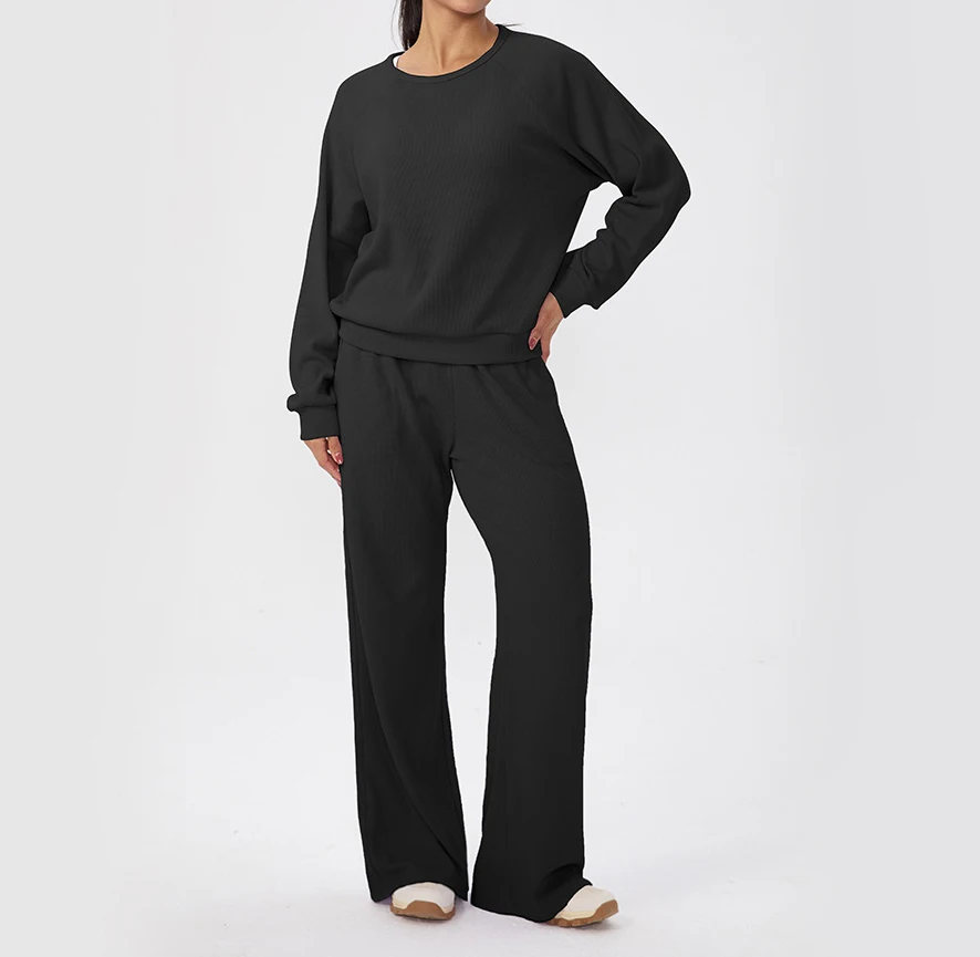 Autumn Winter Hot Selling Yoga Set Round Neck Long Sleeved Loose Pants Two-Piece Set Casual Yoga Sportswear