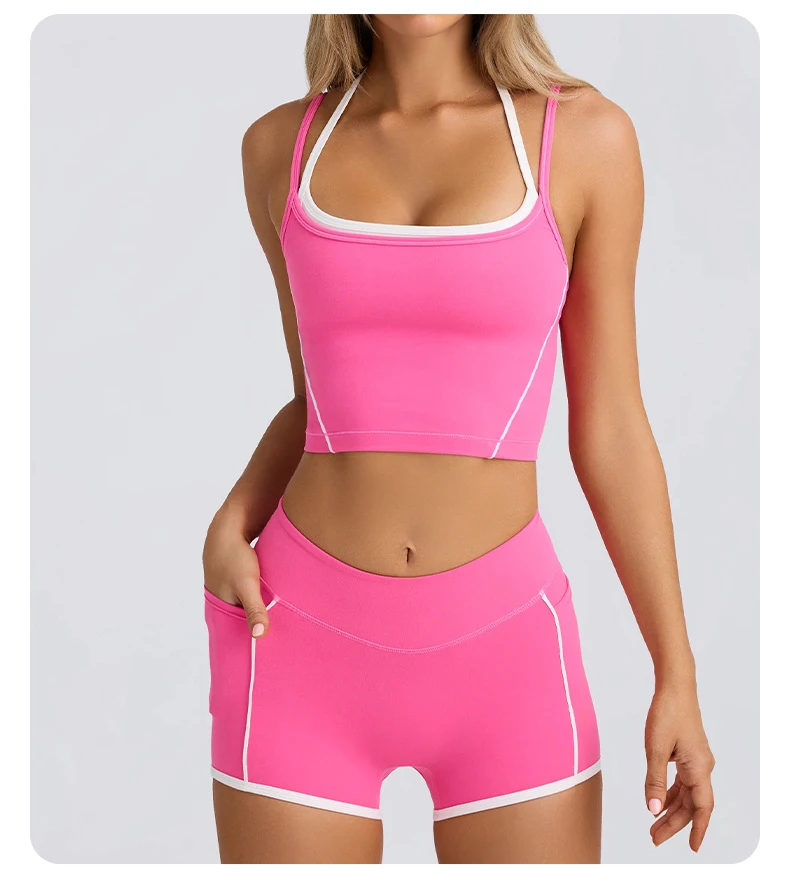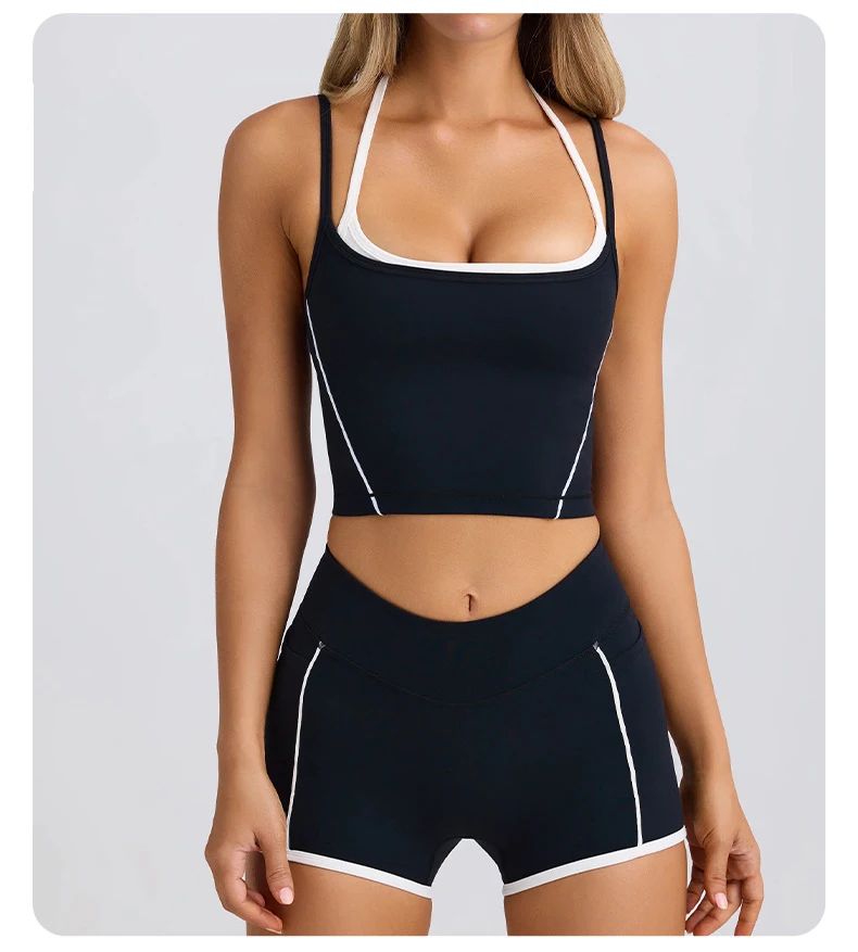 Customized Logo Spring Summer High-Quality Two-Piece Bra High Waisted Shorts Yoga Sportswear Golf Fitness Set