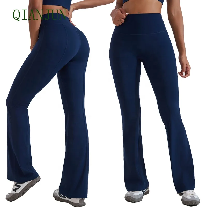 Wholesale Custom Ribbed Flare Pants V Waist Fitness Yoga Leggings With Pocket Lightweight Spandex Print Sport Leggings