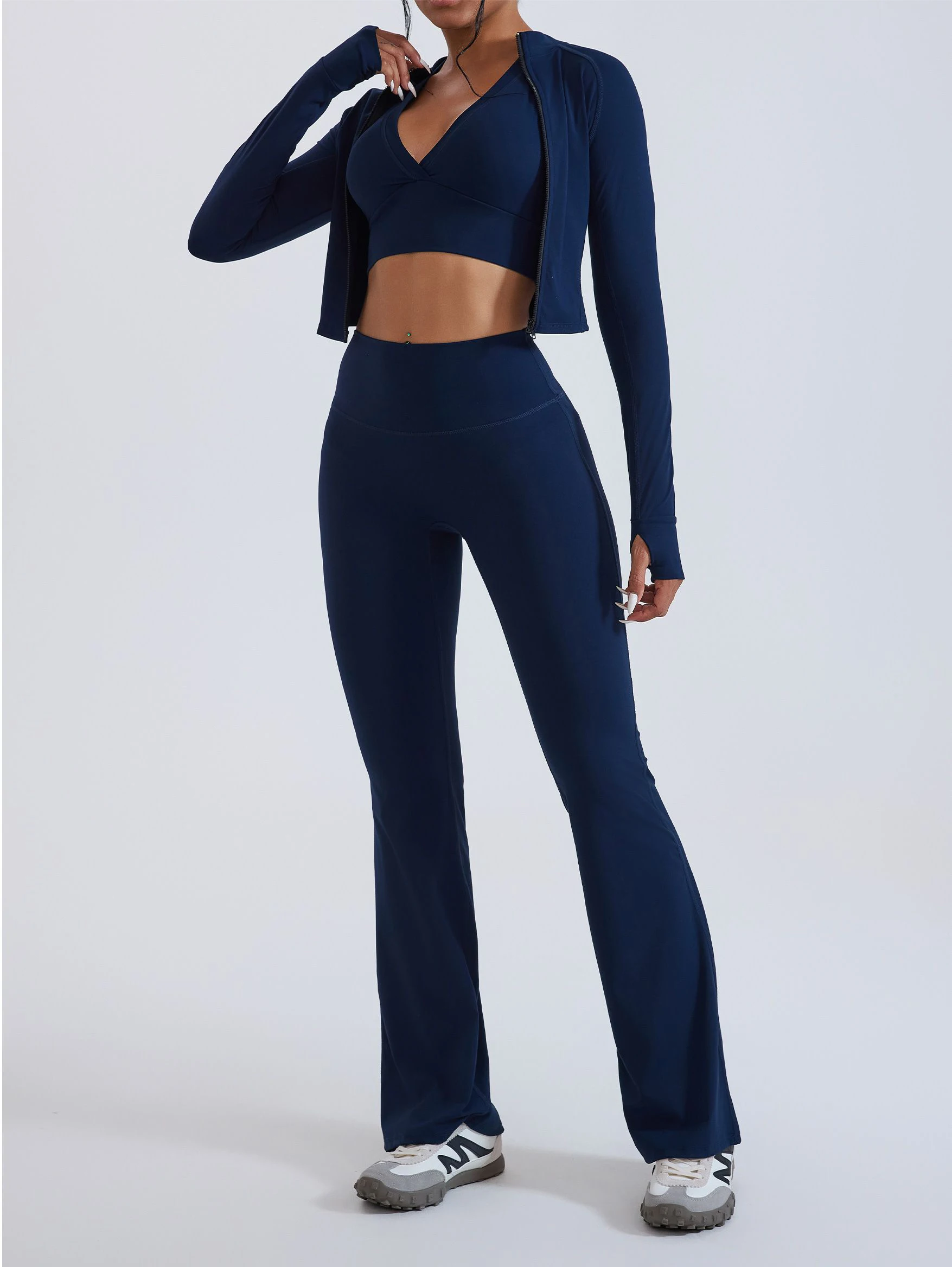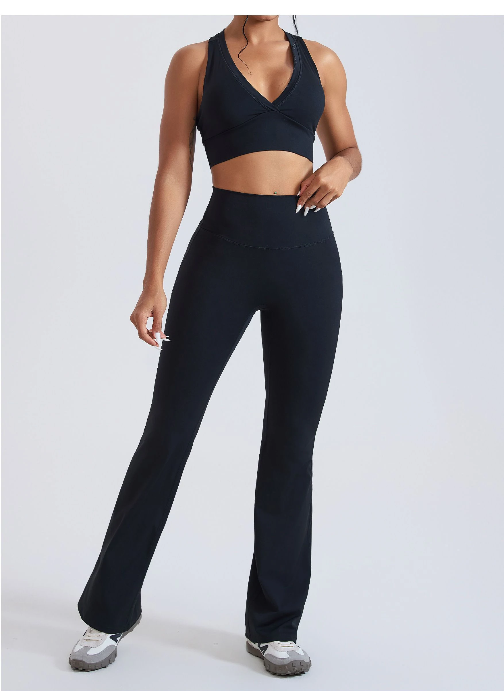 YISHENHON Recyclable Fabric Quick Dry Yoga V Waist Gym Leggings Running Workout Wide Leg Pants Flare Woman Sport Pants