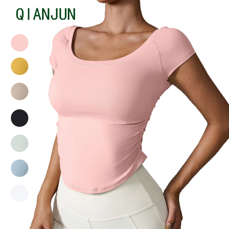 Wholesale Plus Size Yoga T-skirt Solid Color Tight-Fitting Plasticity Short T-Skirt Casual Leisure Yoga Sport Tops