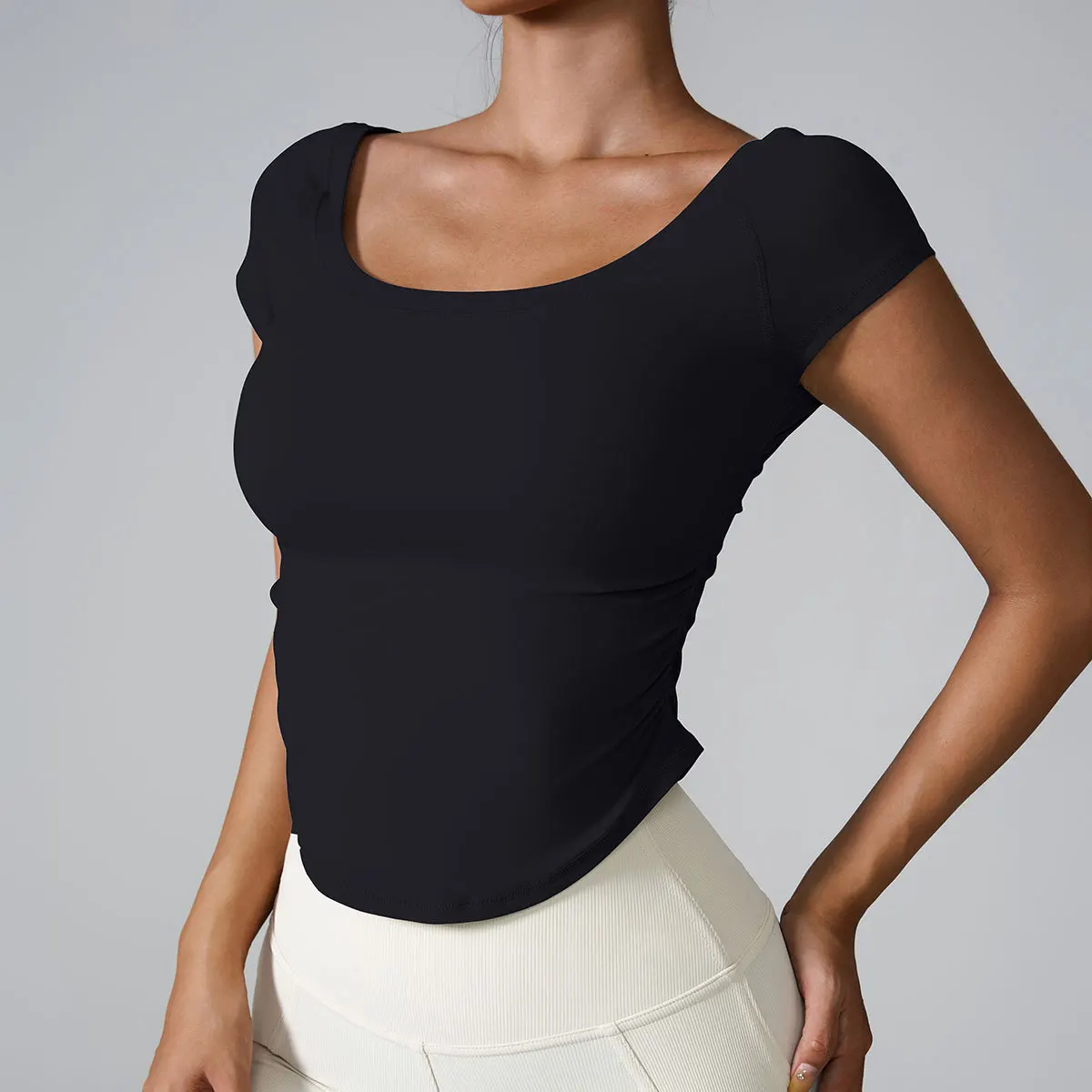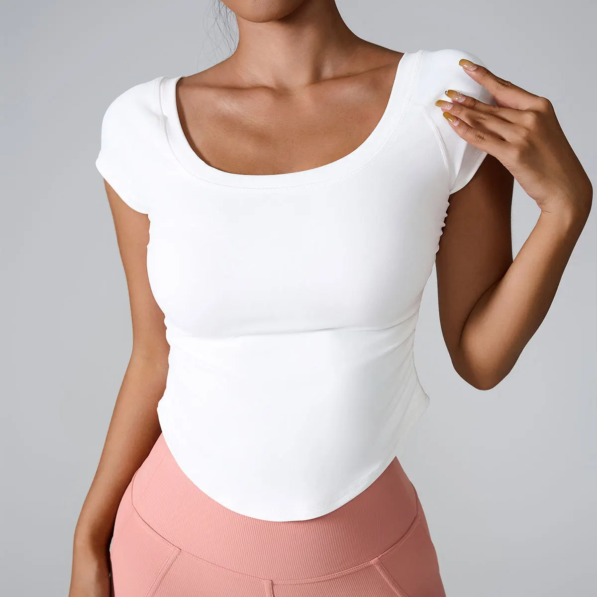 Custom Logo Women's Yoga Tops Square Neck Breathable Quick Dry T-Skirt Aerobic Fitness Gym Sport Yoga Wear