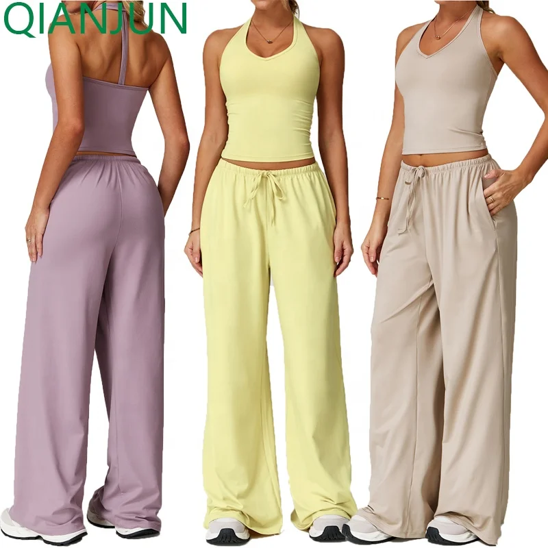 YISHENHON Recyclable Fabric Quick Dry Yoga V Waist Gym Leggings Running Workout Wide Leg Pants Flare Woman Sport Pants