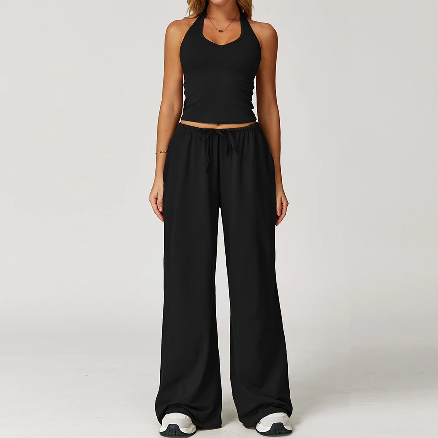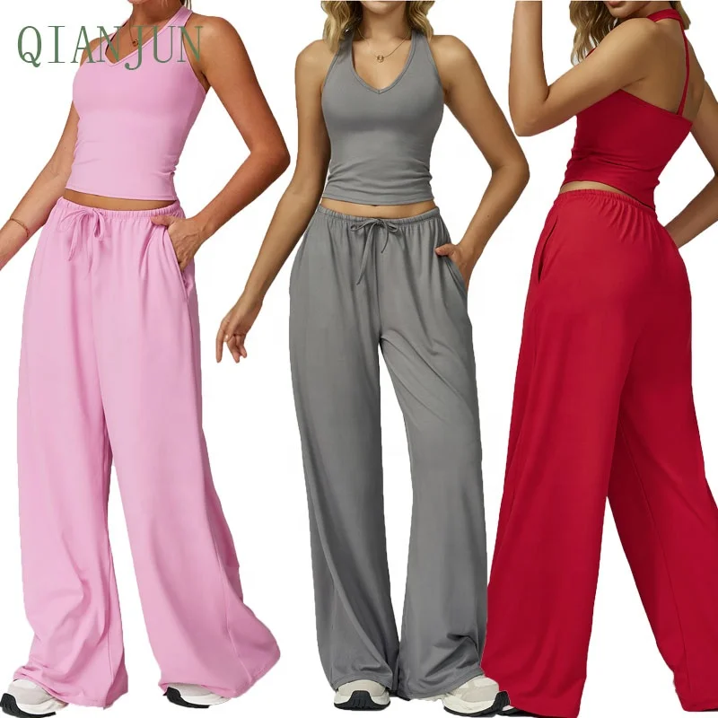 High Quality Women's Beautiful V Neck Athletic Yoga Set Gym Strength Training Comfortable and Soft Sports Straight Legs Yoga Set