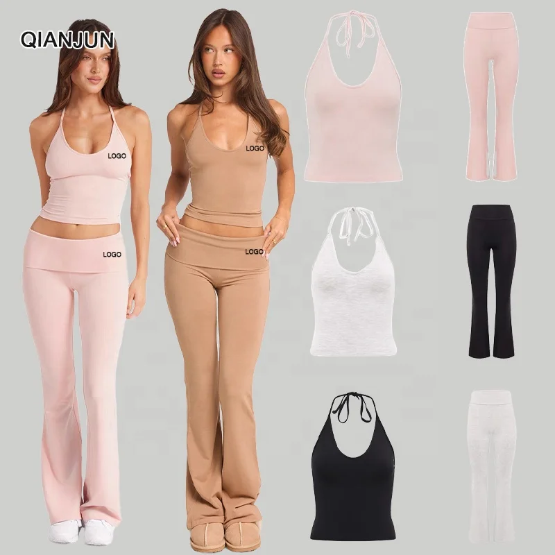 2026 New Women's Gym Pants Yoga Straight Leg Pants Yoga Straight Leg Vest Sportswear Belt Flared Pants Fitness Set
