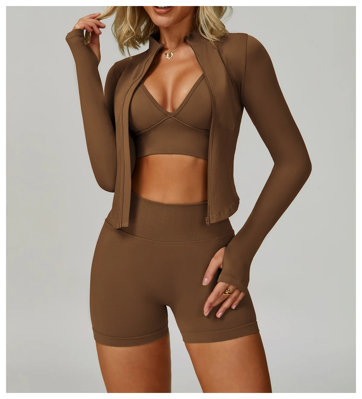 YISHENHON New Arrivals Quick-drying Women's Tight Running Sports Fitness Yoga Jacket Activewear Zip Long Sleeve Workout Crop Top