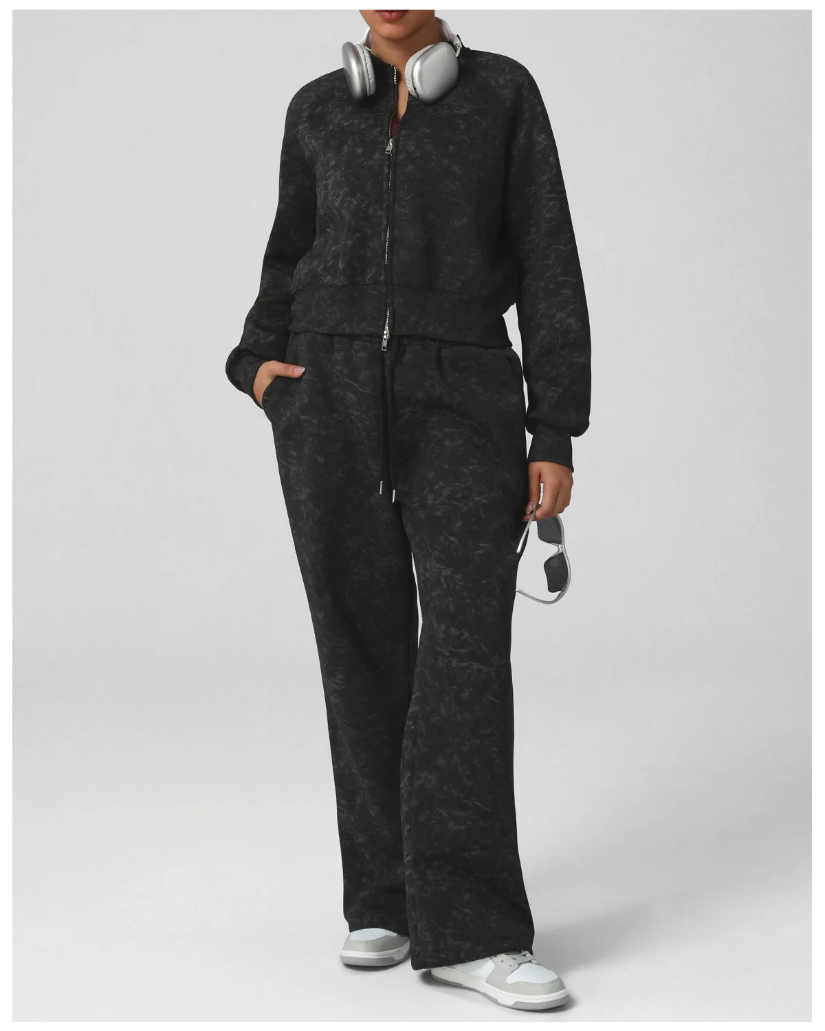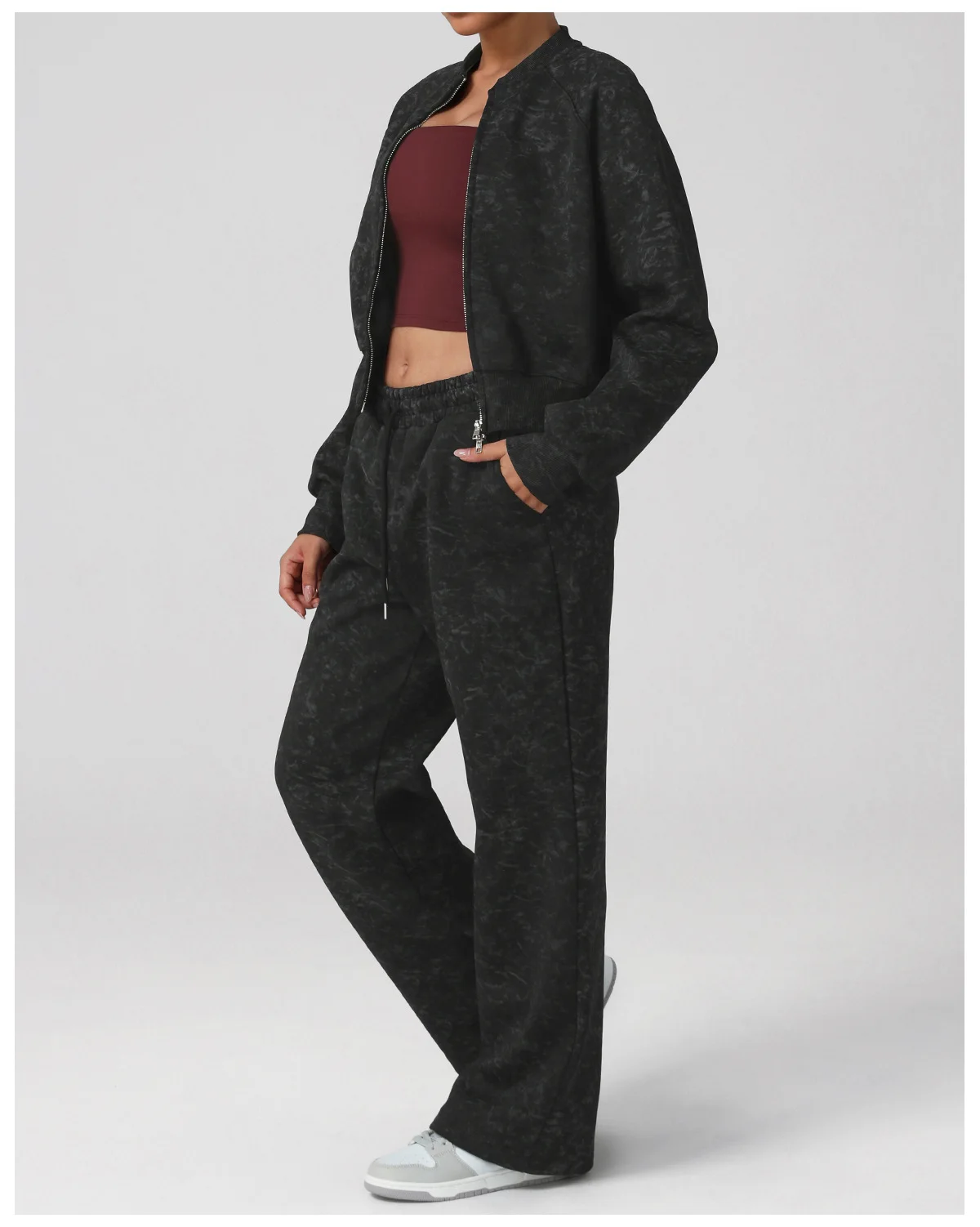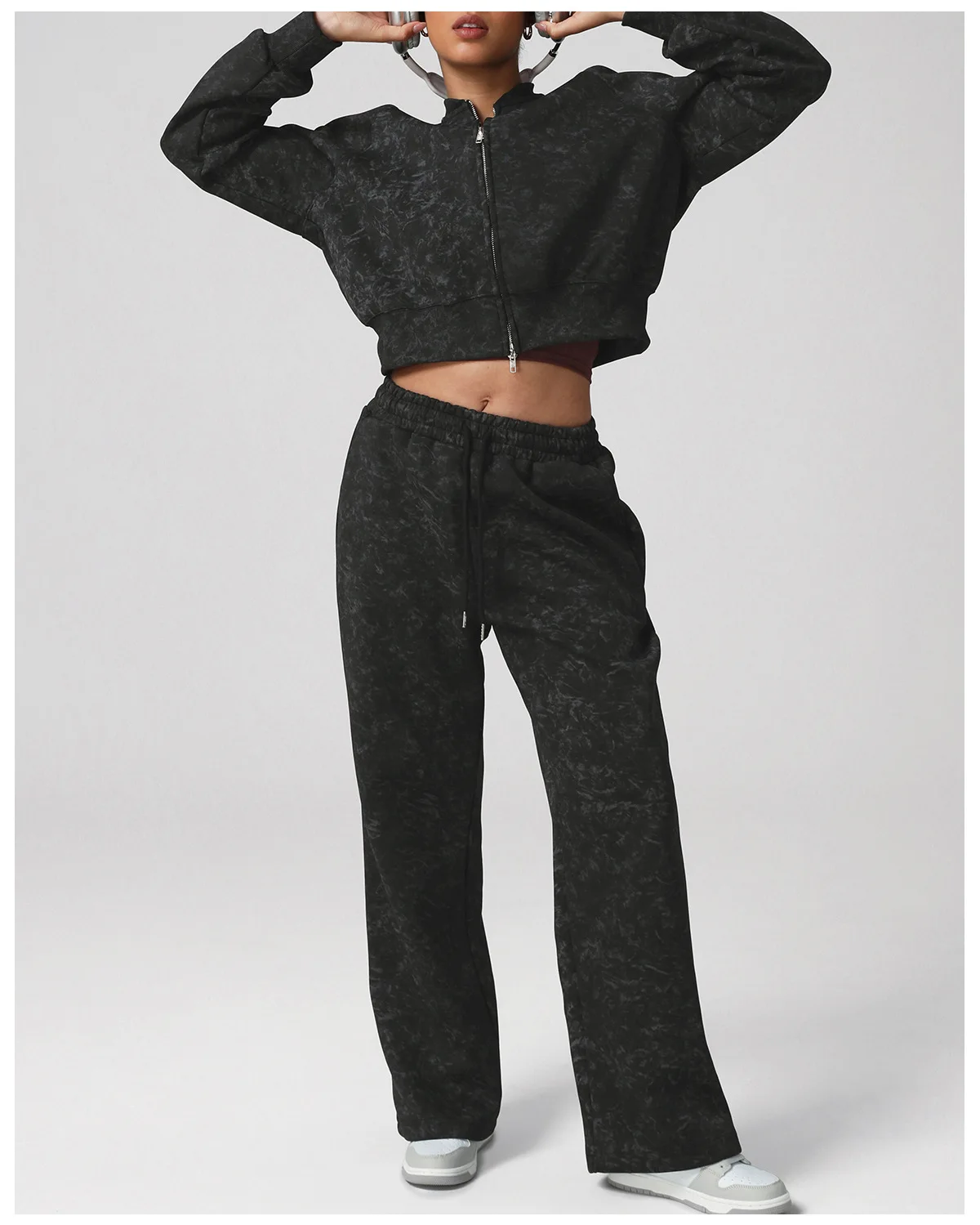 Wholesale Plus Size Activewear 2-Piece Yoga Set Stand Neck Loose Baseball Wear High Waisted Pants Gym Matching Set