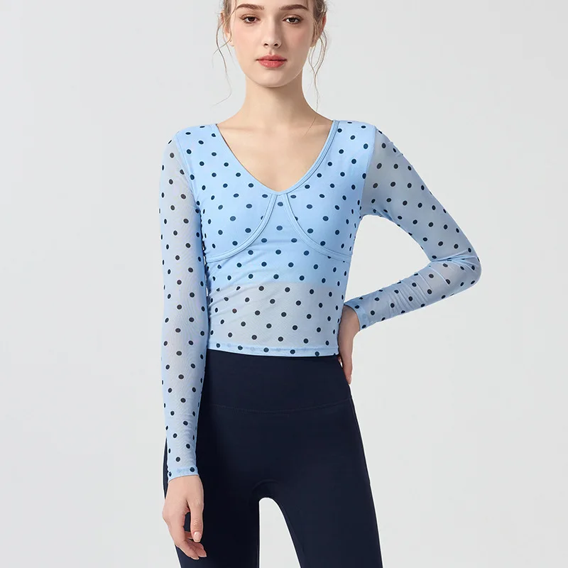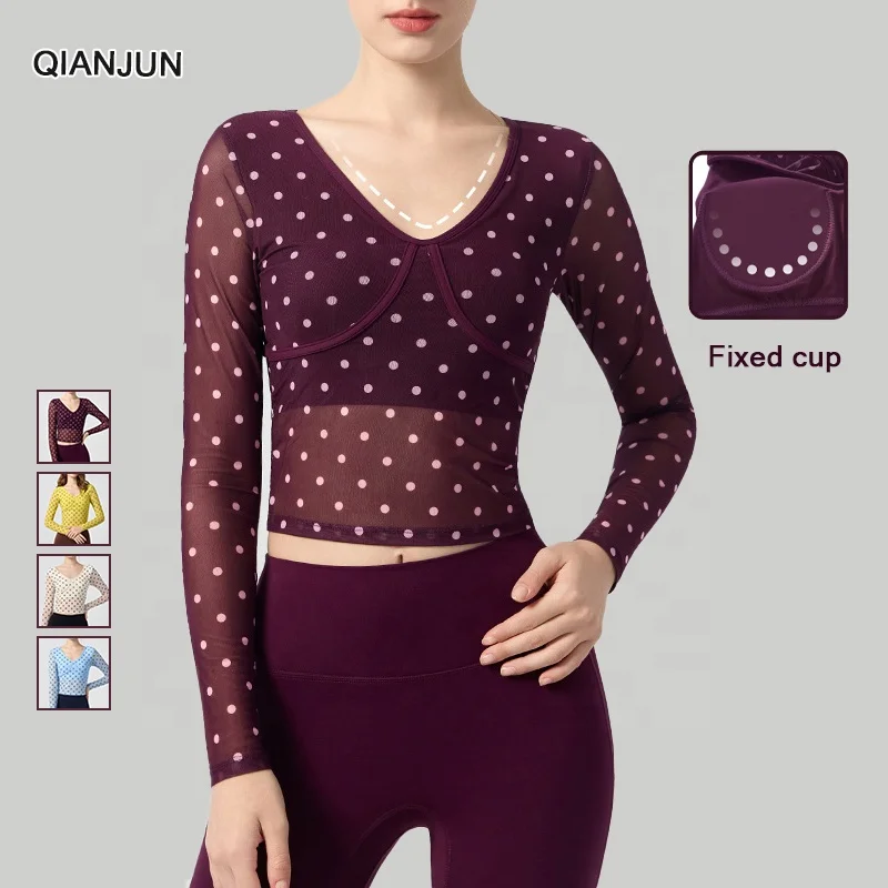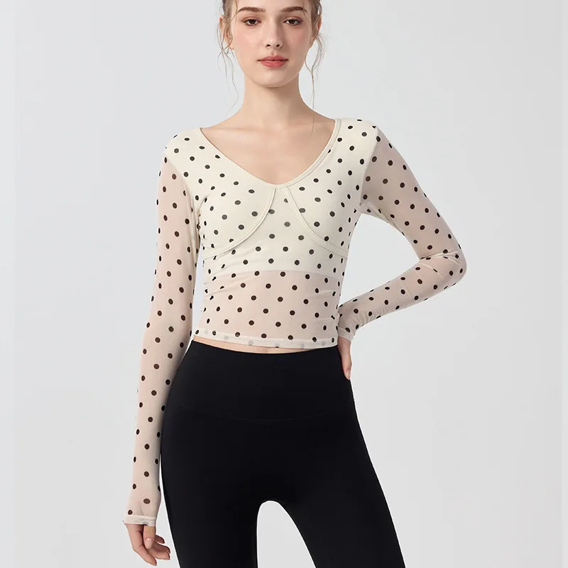 Women's Yoga Top with Breathable Long Sleeves, Slim Fit, Mesh, Supportive Breast Pads