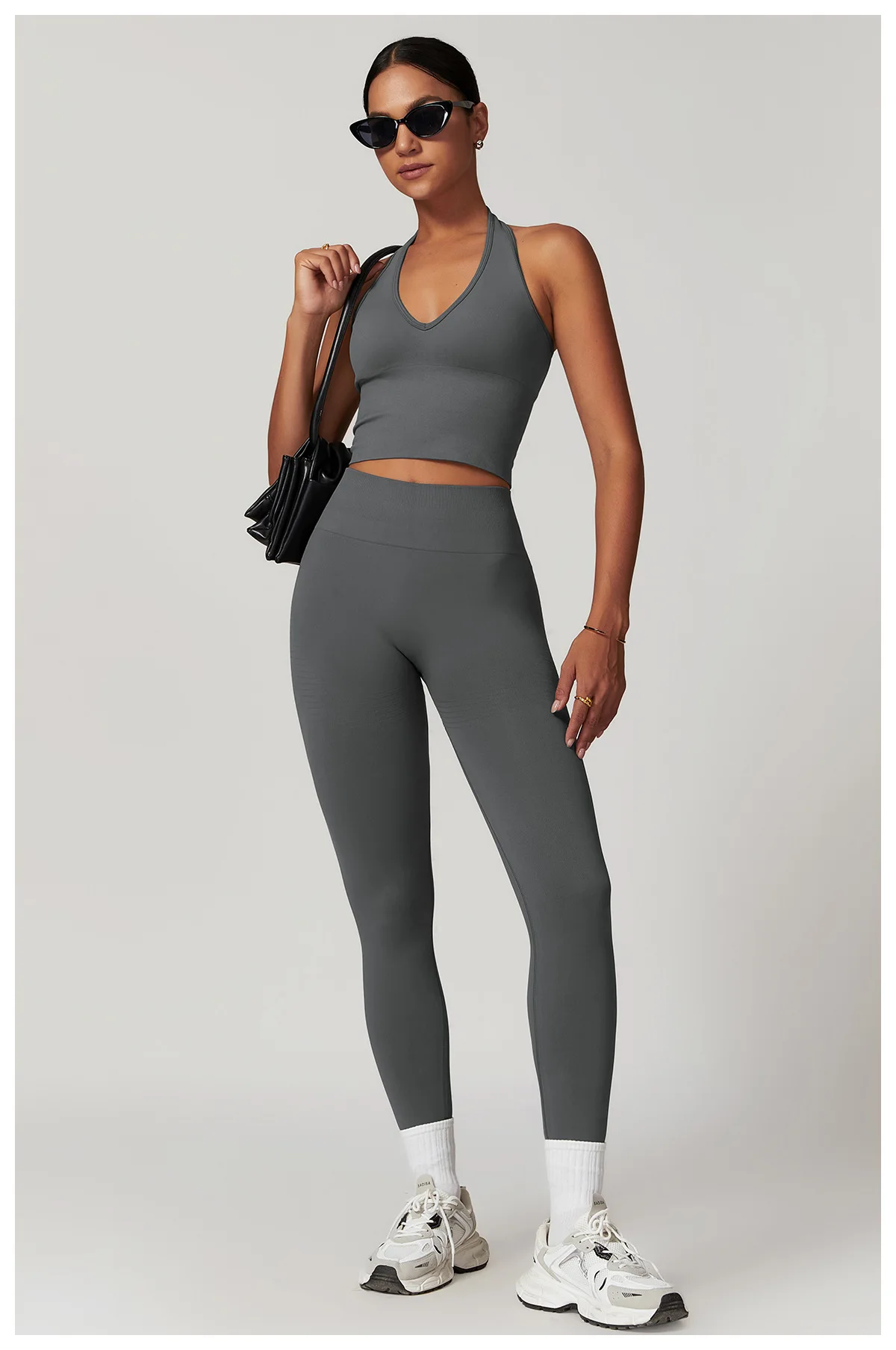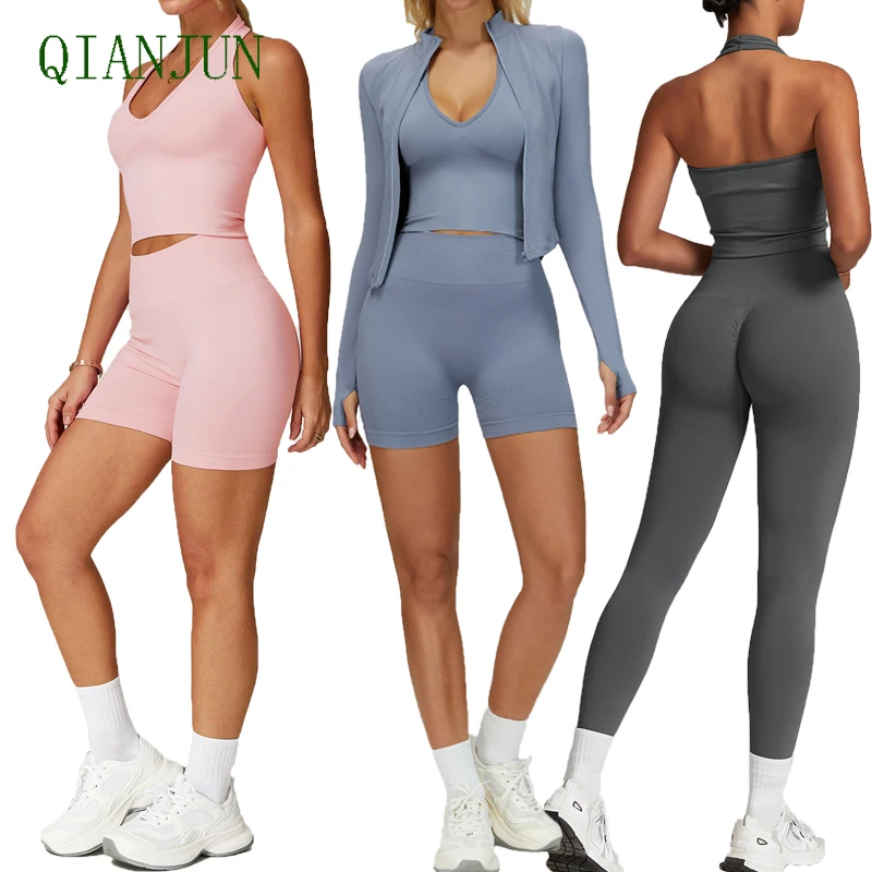 Custom Logo Yoga Fitness Sets Seamless Halter Neck Sports Bra Workout Vest High Waist Leggings Gym Suit Yoga Sets