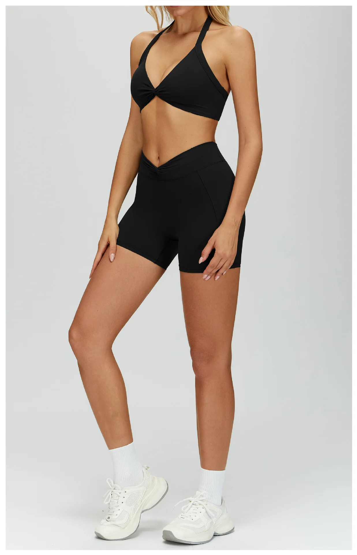 Custom Logo Women's Breathable Gym Fitness Wear Half-Zip Short Sleeve High Waist Shorts Leggings Sportswear Yoga Set