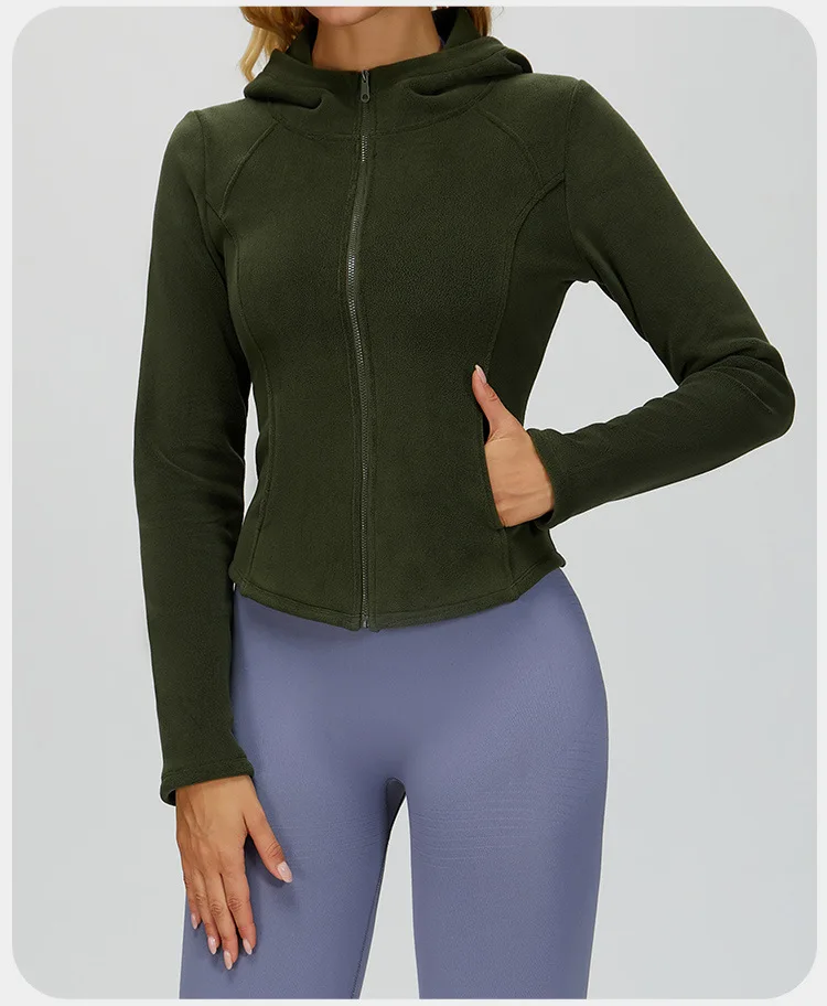 OEM ODM Women's Slim Fit Hooded Fleece-lined Yoga Jacket Thickened Gym Long-Sleeved Winter Fitness Zipper Jacket Warm