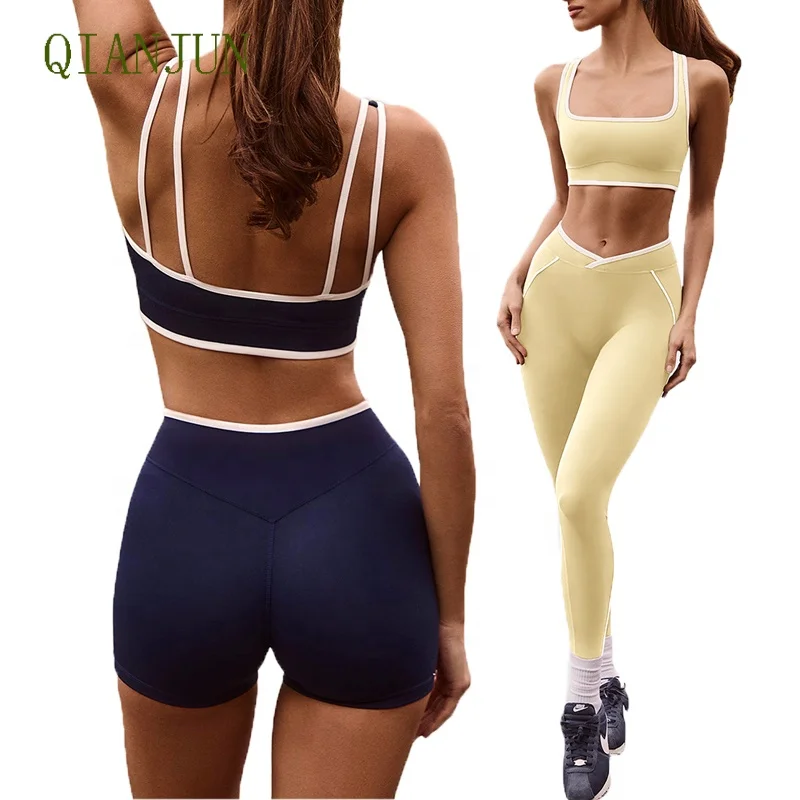 Custom Logo Square Collar Sports Yoga Bra 3 Pieces Set Breathable Backless Golf Crop Yoga Sports Wear Butt Lift Exercise Set