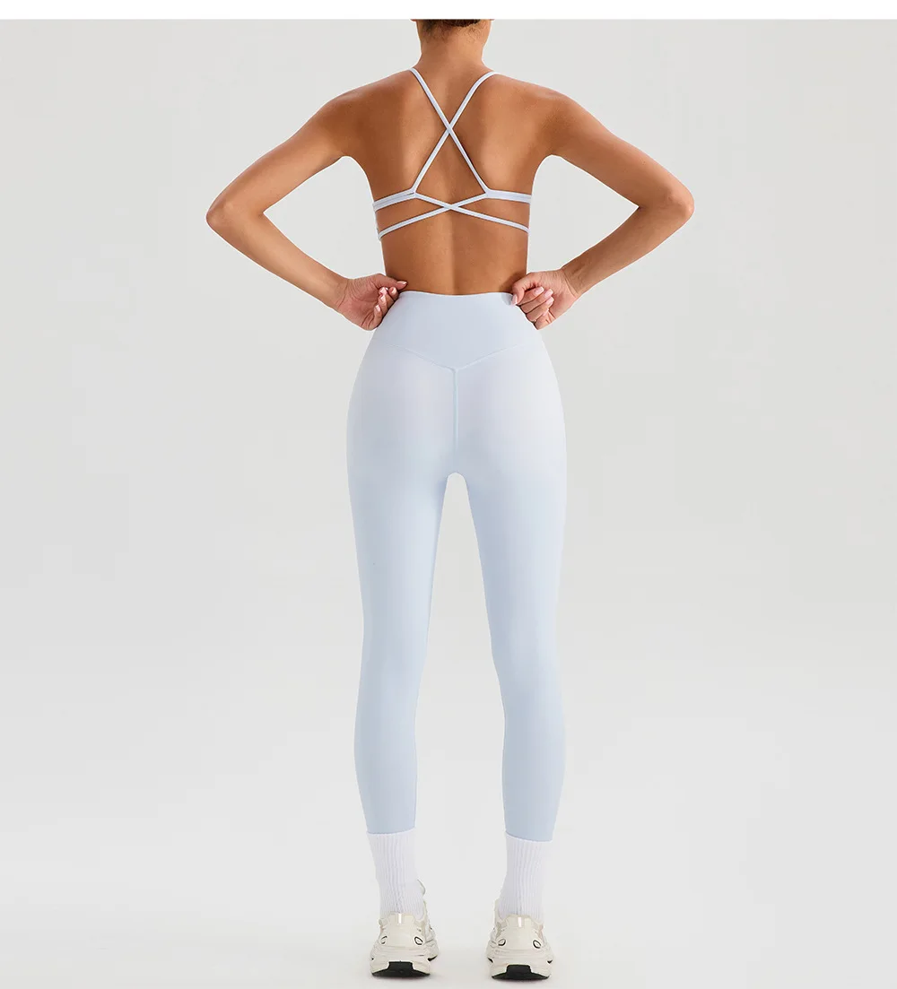 Halter Neck V-shaped Neckline Gym Fitness Yoga Wear 5 Sets Breathable Quick Dry Women Running Naked Tight-Fitting Workout Sets
