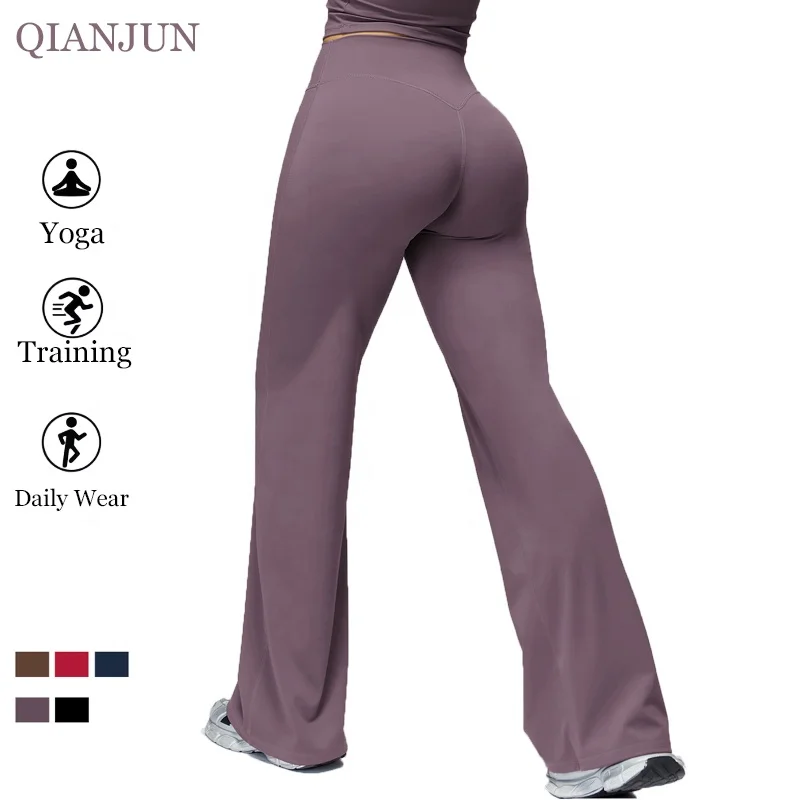 Custom Logo High Waist Workout Fitness Straight Yoga Pant Tight Wide Leg Flared Pants Women Gym Activewear Legging