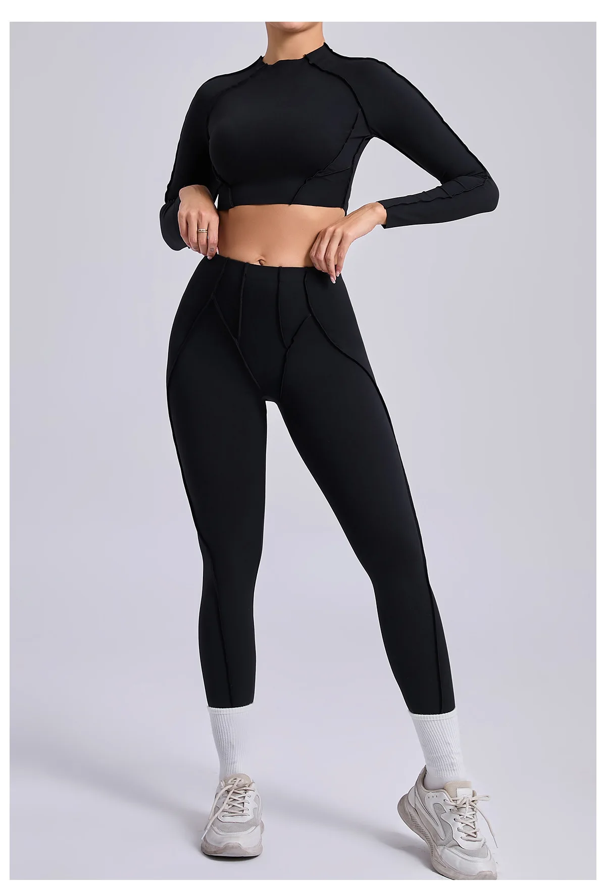 Wholesale Activewear Plus Size Gym Fitness Clothing Outfits Active Wear 2-Piece Long Seevle Top High Waist Legging Yoga Wear
