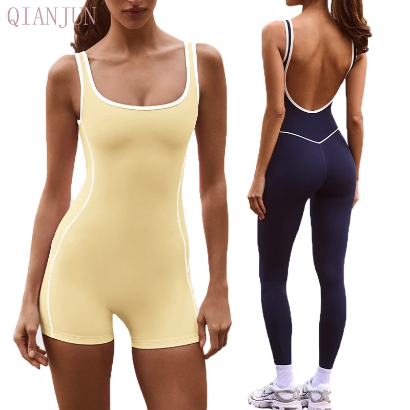 High Quality Seamless Gym Fitness Bodysuit Color-Blocking Design Yoga One Piece Sleeveless Quick Dry Gymnastics Yoga Jumpsuit