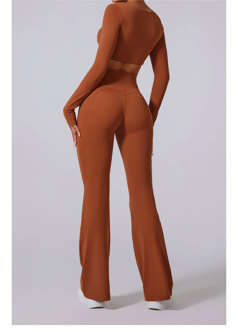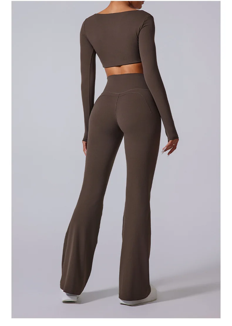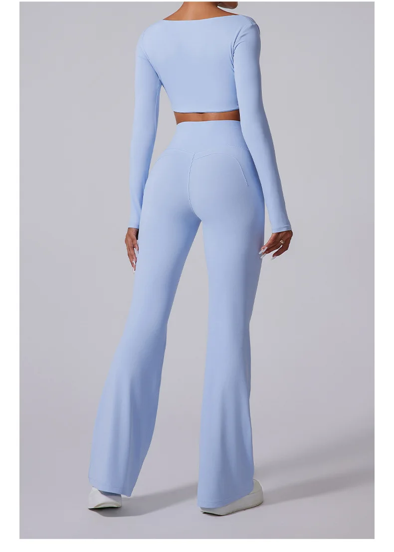 Hot Selling Women's Square Collar Flare Pants Yoga Set Outdoor Fitness Running Elegant 2 Piece Yoga Set Suitable for Sports