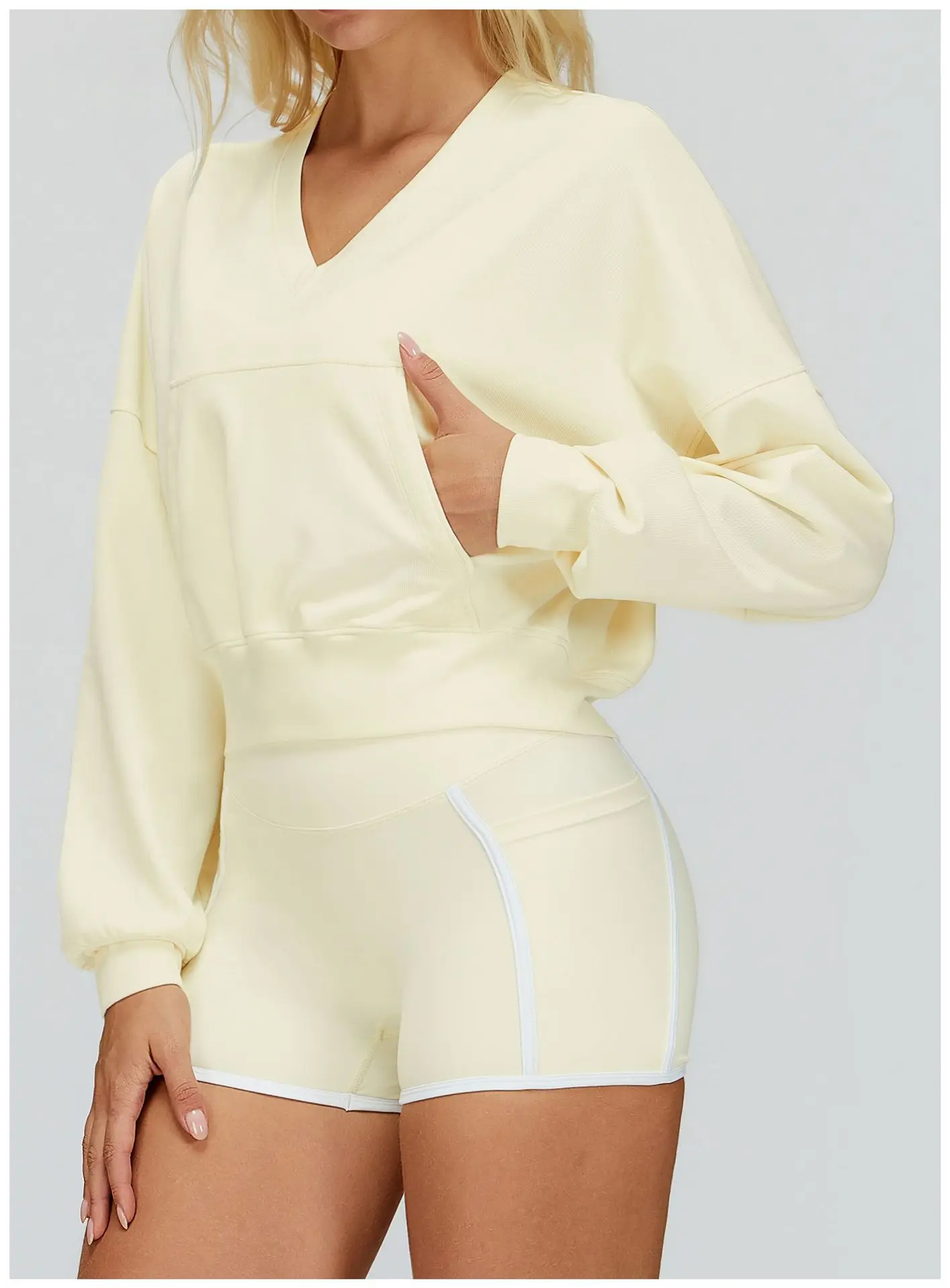 Wholesale Plus Size Gym Fitness Wear Yoga Top V-Neck Warm Women's Workout Outdoor Running Hooded Sweatshirt