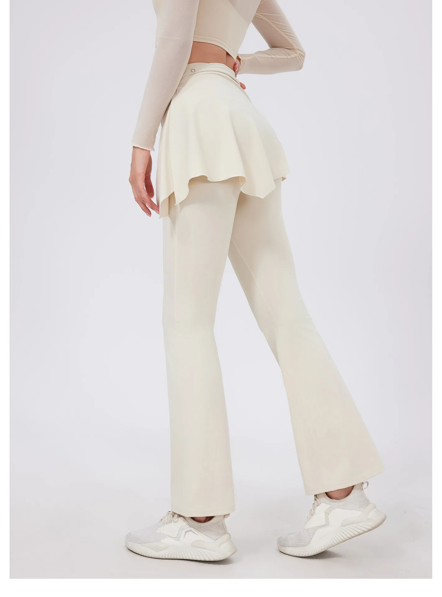 New Style Women High-waisted Pleated Yoga Pants Two Pieces Slimming Style Ladies Yoga Flared Leggings